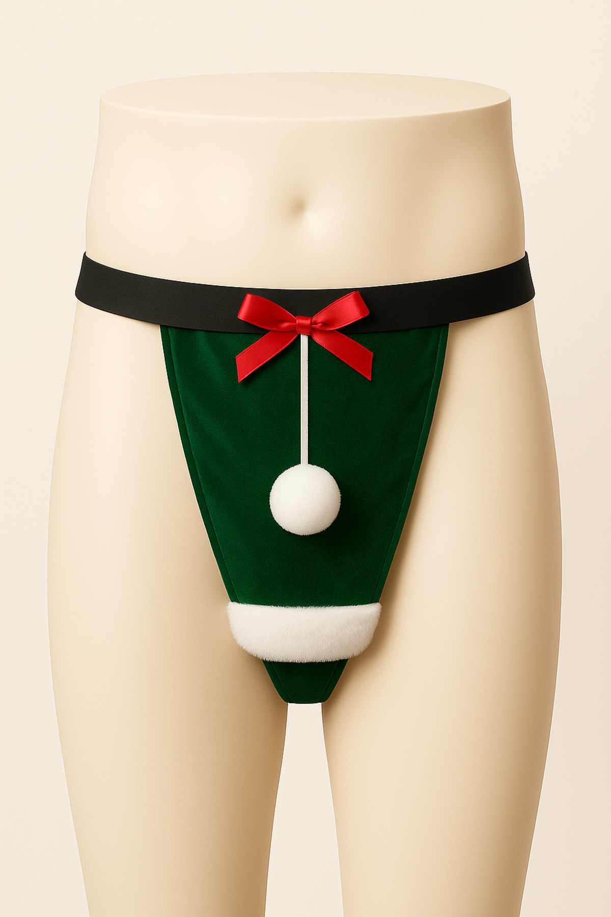 NSMLİFE Kadın Yılbaşı Ponpon Detaylı String, Yılbaşı Noel Baba Sakallı Hediye Kadın String Modeli