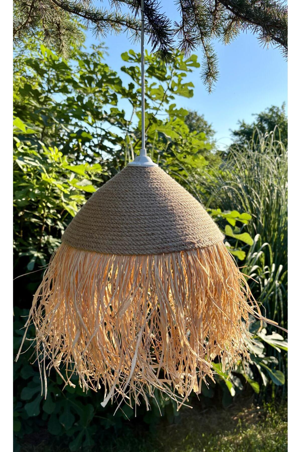 NuaCraft El Yapımı Rustik Bohem Aydınlatma Hasır Doğal Rafya Püsküllü Avize (Duy Dahildir)