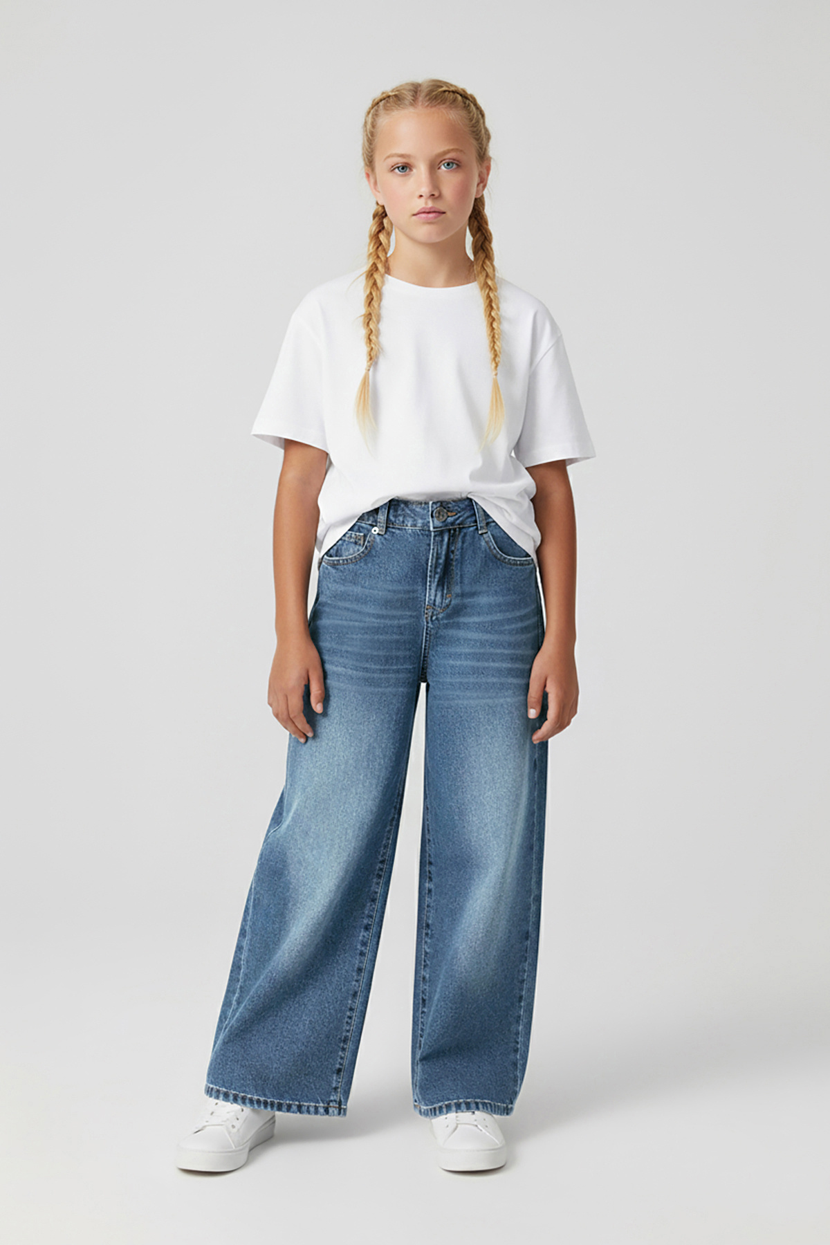 Numuu Kız Çocuk Geniş Paça Kot Pantolon