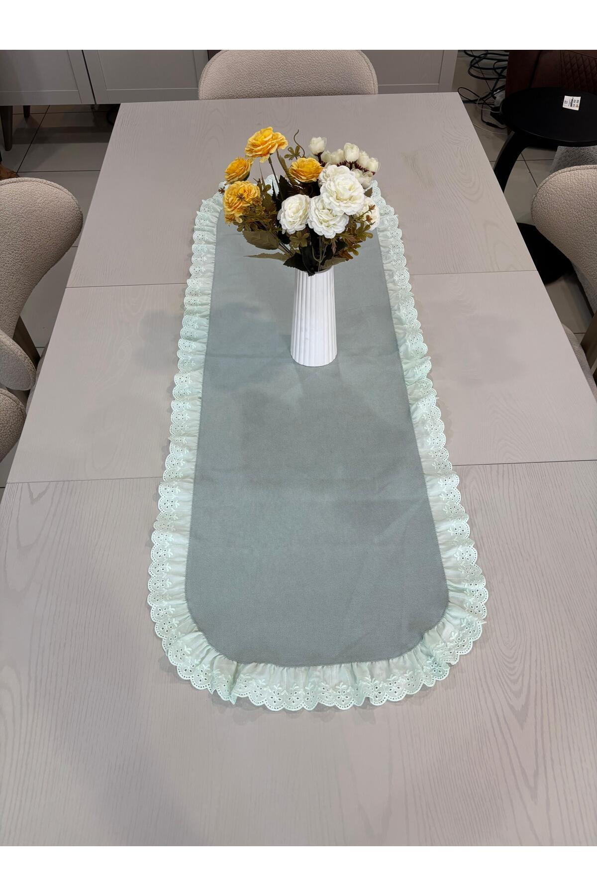 NURGİTA HOME % 100 Pamuk Duck Keten Fisto Fırfırlı Oval Runner (40X110)
