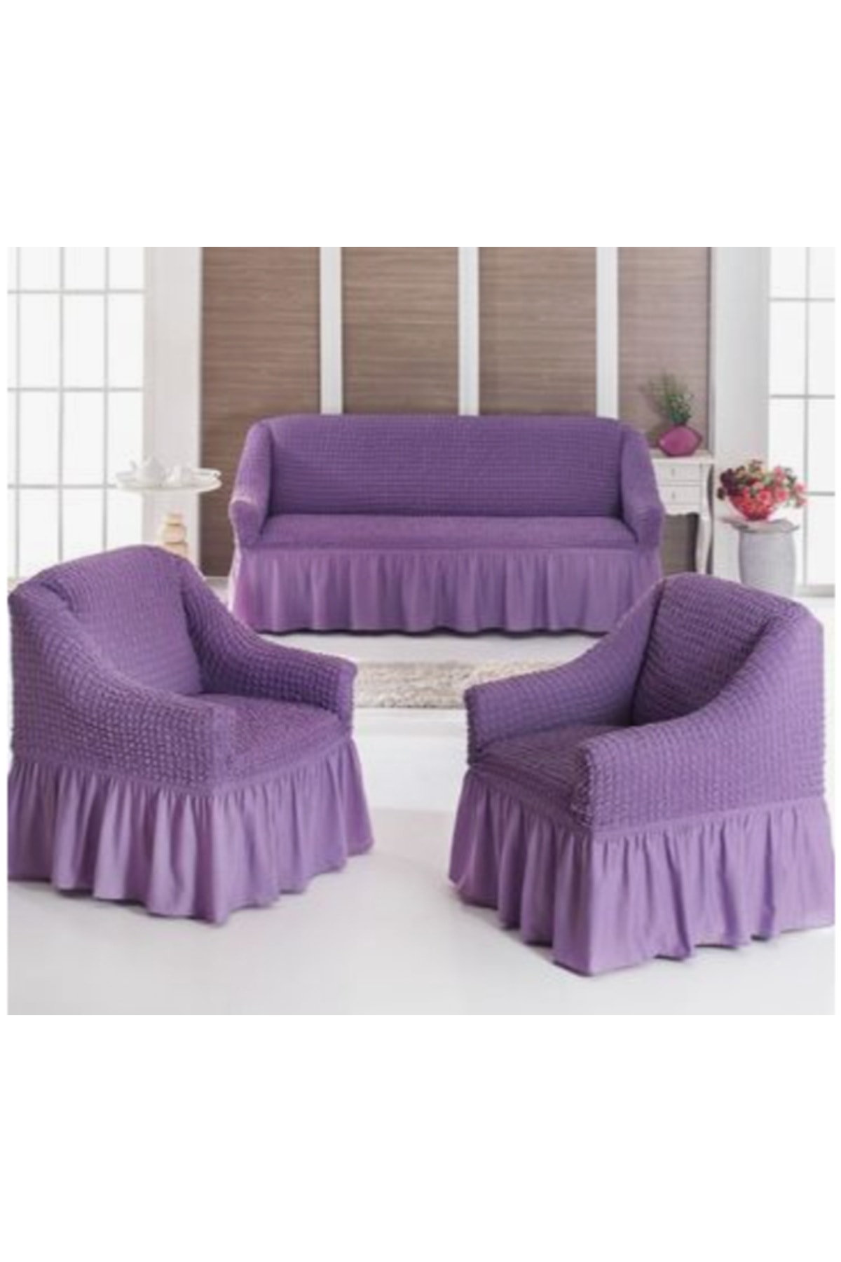 Nusret Bürümcük Lastikli Koltuk Örtüsü / Kanepe Örtüsü 3+1+1_lila