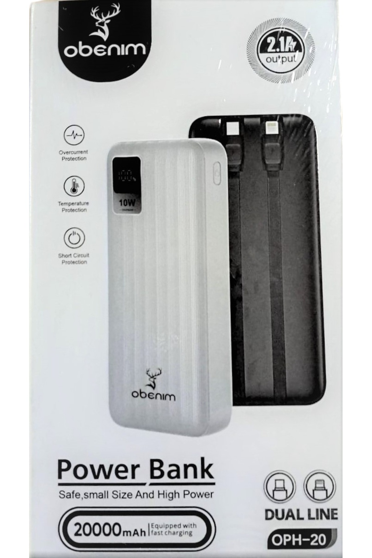 obenim Powerbank OPH-20PD Entegre Lightning ve Type-C Kablolu 20.000mAh Hızlı Şarj