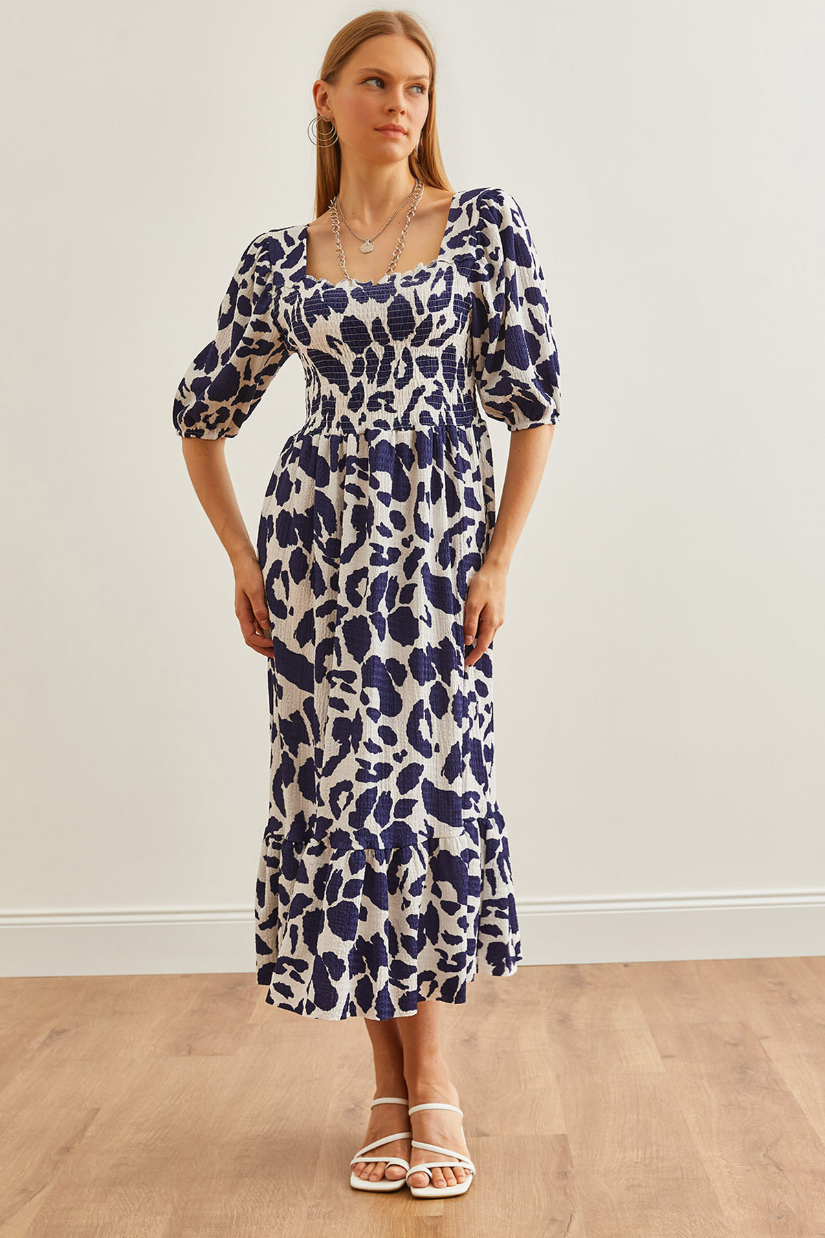 Olalook Kadın Leopar Lacivert Roba Gipeli Midi Örme Elbise ELB-19002108 Özellikleri