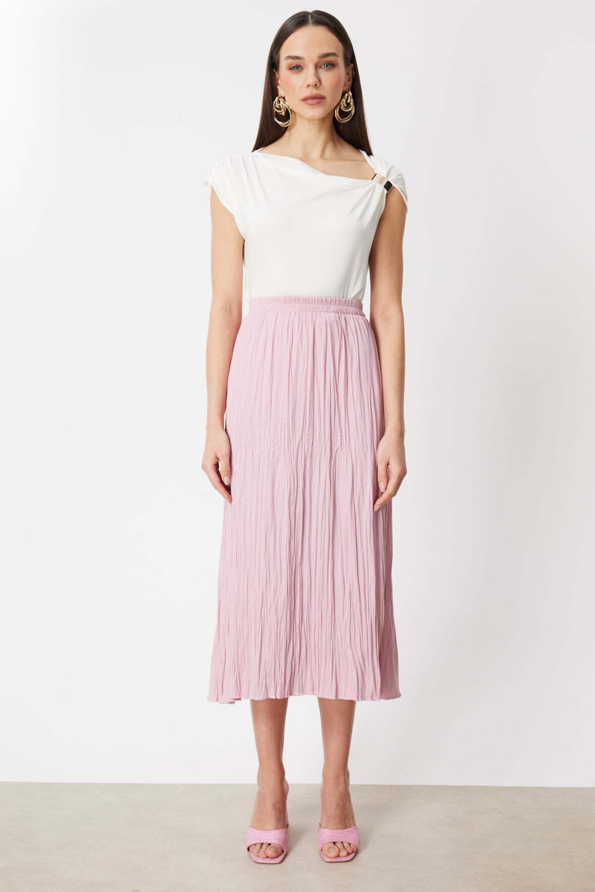ON Kırışık Görünümlü Piliseli Maxi Etek