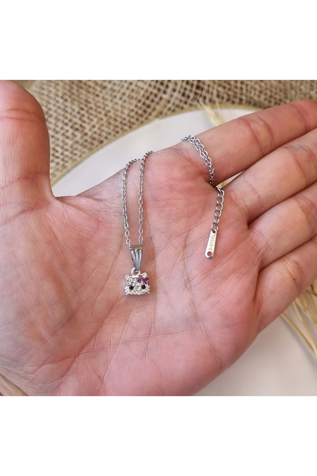 one cat charm Hellokitty Model Zirkon Taşlı Çelik Minimalist Kolye Özellikleri