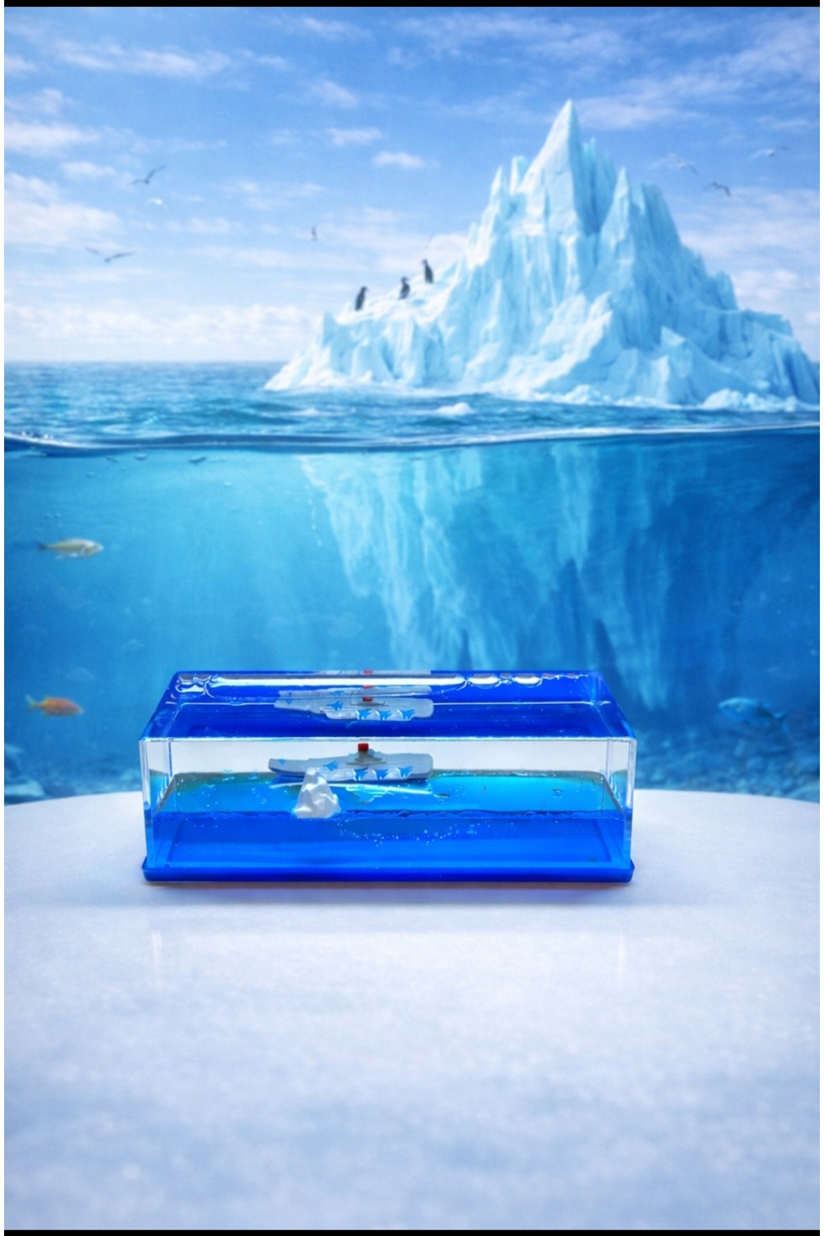 Dikdörtgen mika içinde titanik figürlü batmayan Mavi Su Akvaryum Şişe Şeklinde Batmayan Gemi