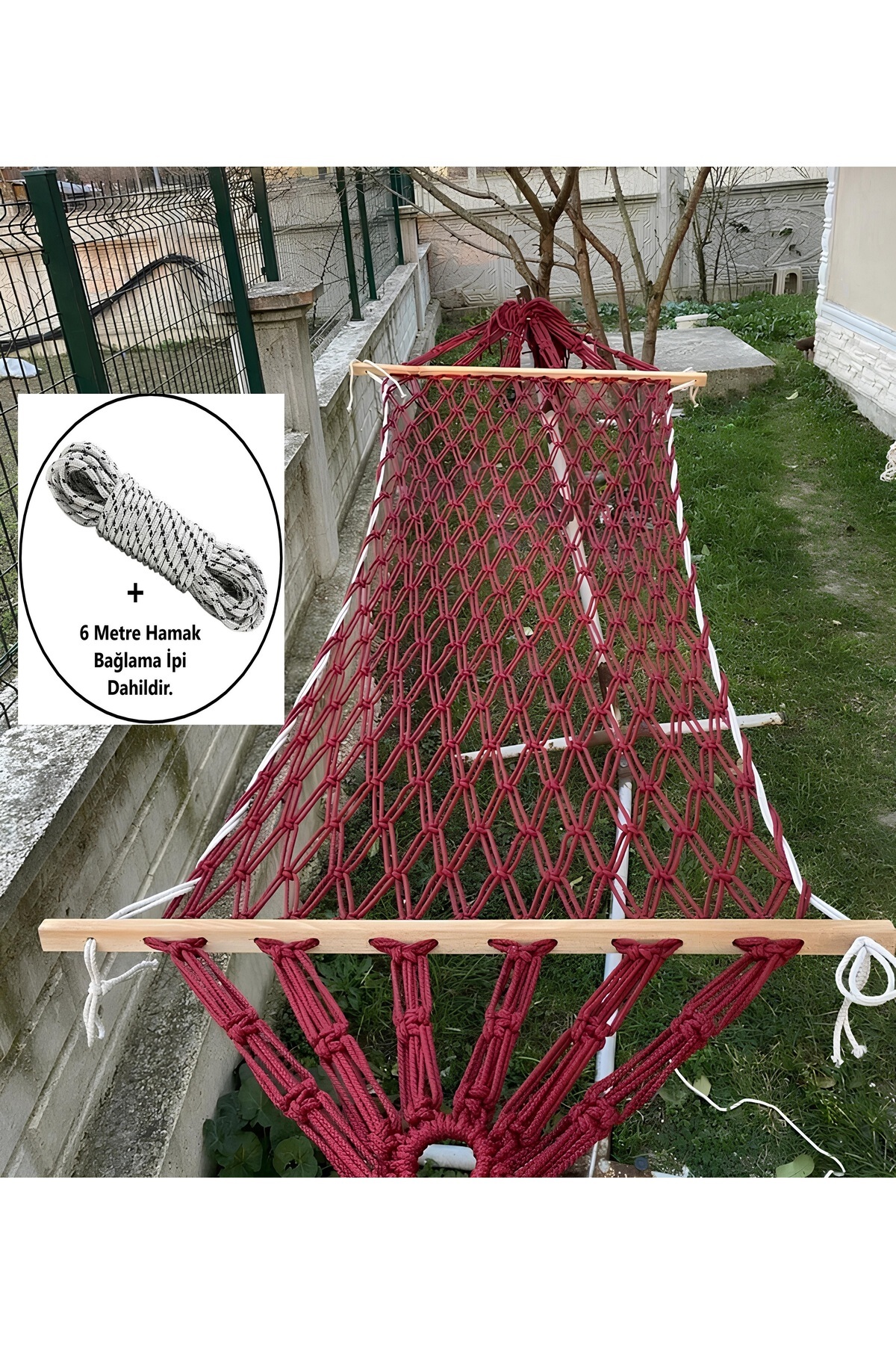 Onouqo Makrome Salıncak Hamak El Örmesi Çift Katlı Tek Kişilik Bordo En 95cm Boy 2mt Taşıma Kp 150kg