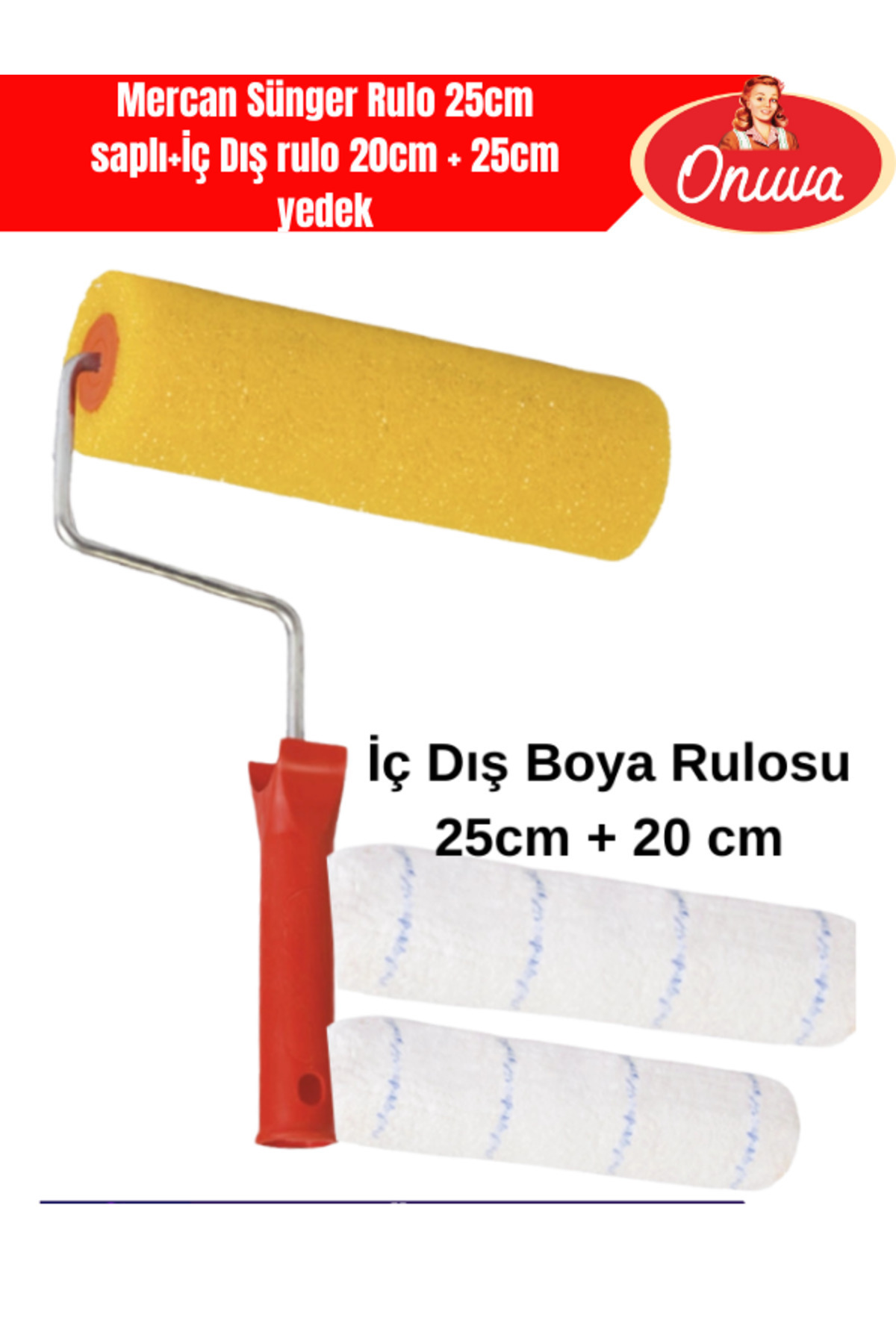 ONUVA Mercan Sünger Rulo 25cm saplı+İç Dış rulo 20cm + 25cm yedek