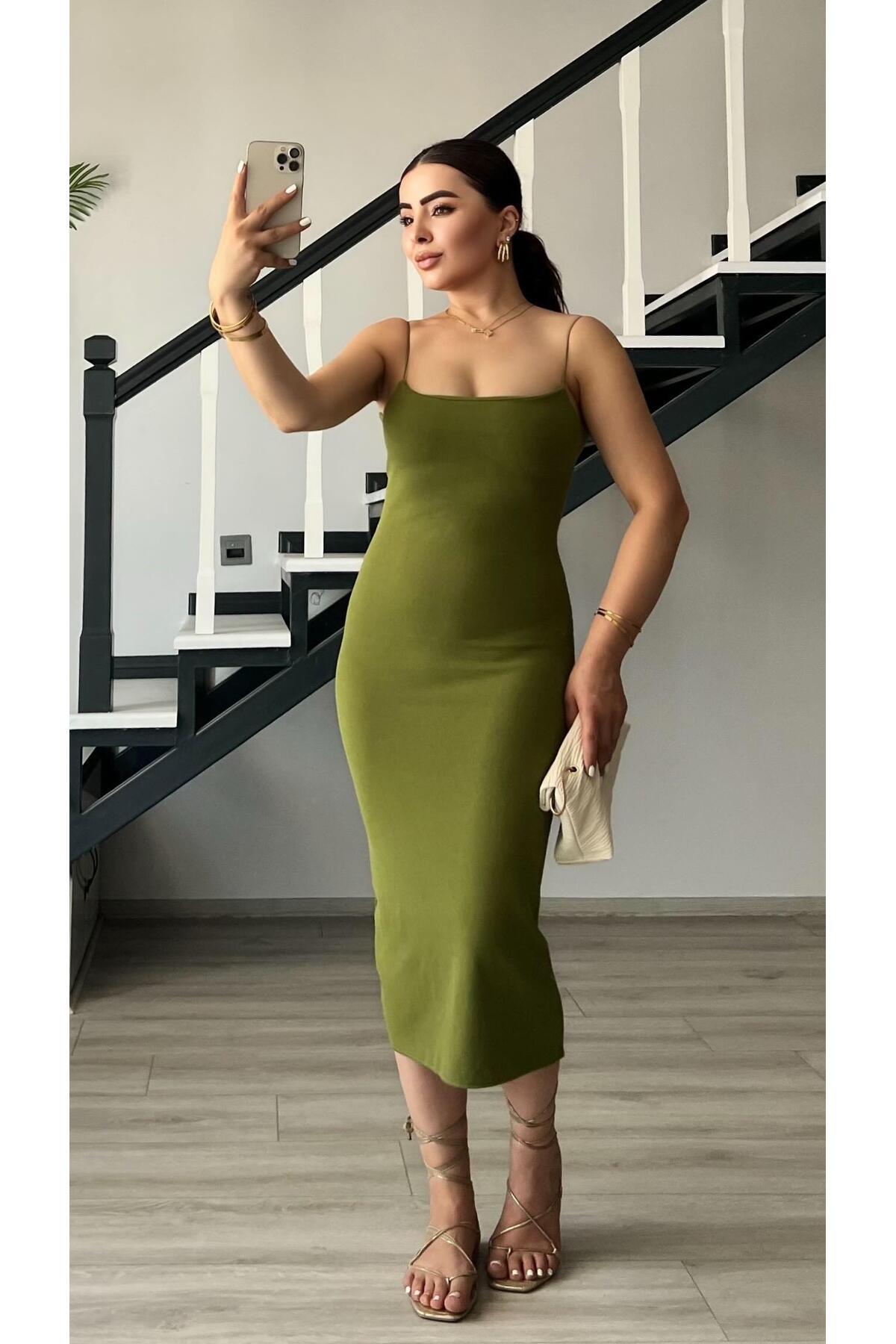 Oslove Olive Çelik Örme Askılı Elbise Özellikleri