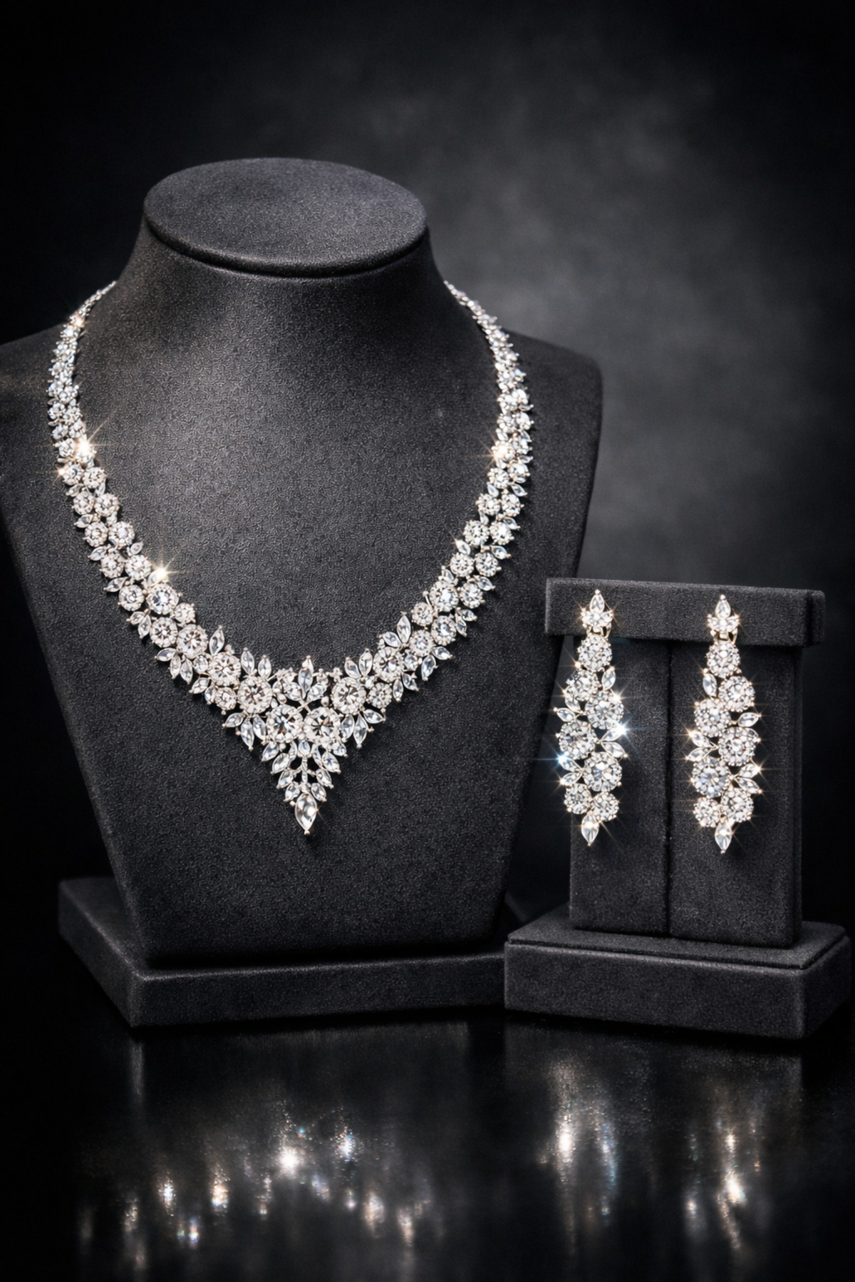 OSMANLI GÜMÜŞ Zirkon Su Yolu Set Rodyum Kaplama Dafne Model Düğün Seti Nişan Seti Kolye Küpe Takı Seti Özellikleri