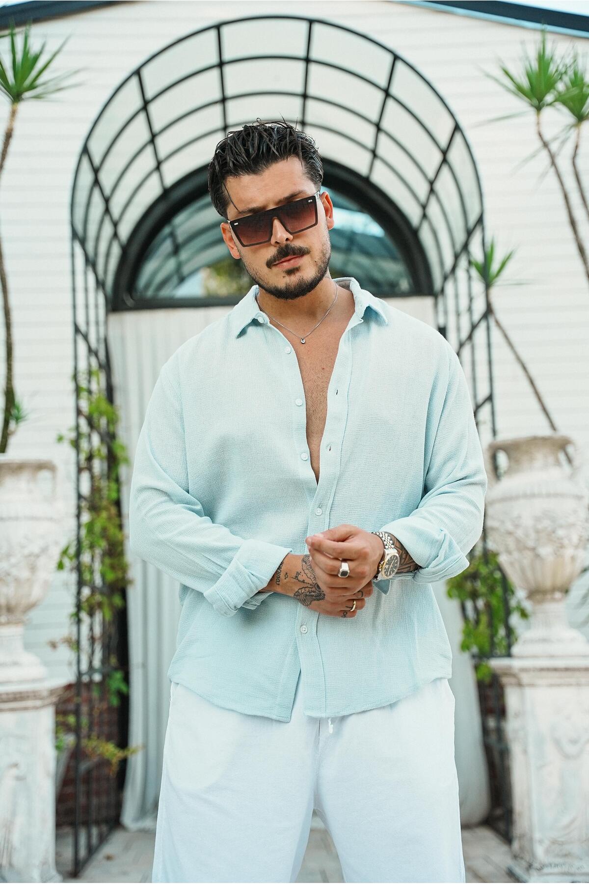 OUTFİT MAN Regular Örme Gömlek Açık Mavi