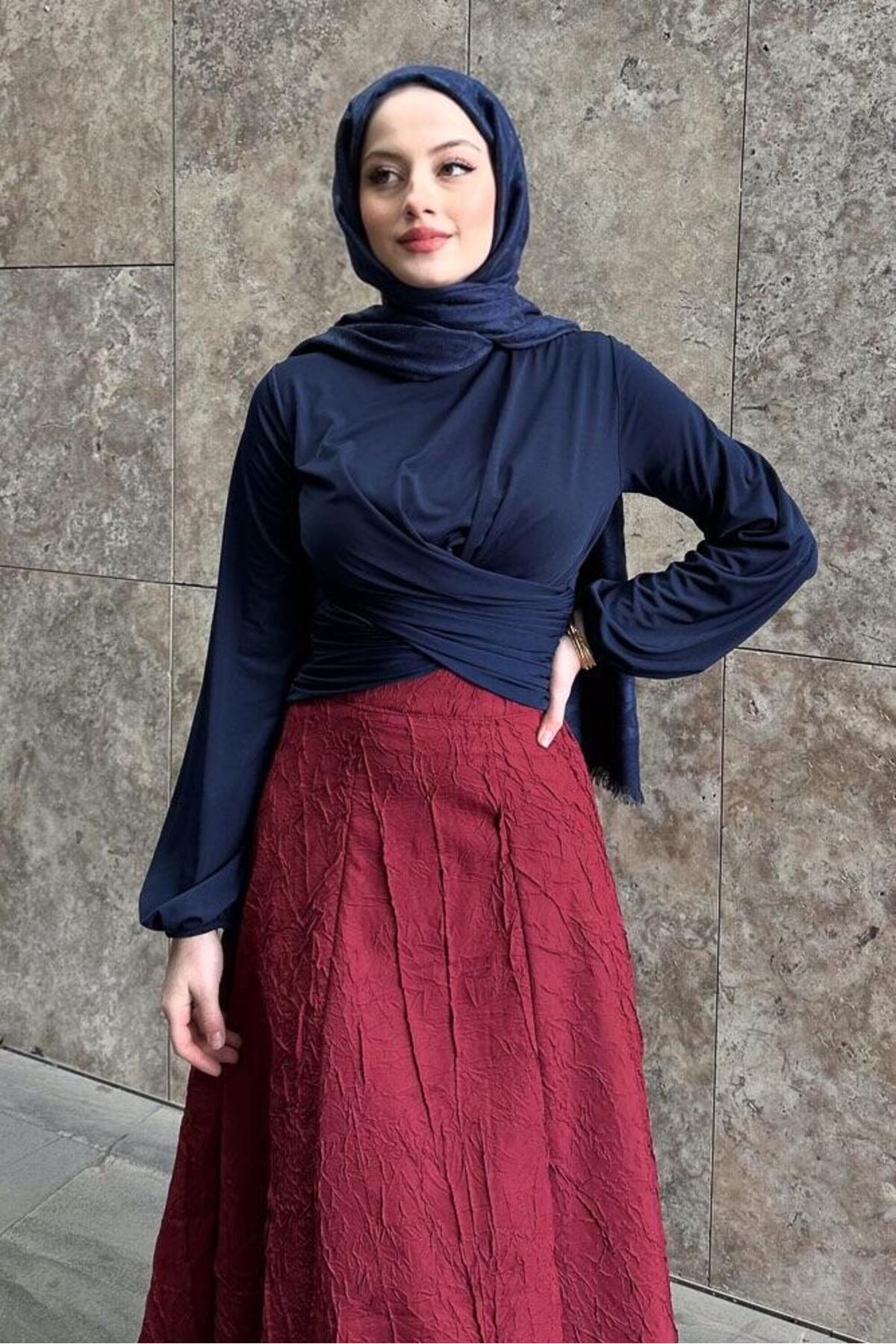 Ovn. Çift Drapeli Bluz - Lacivert Özellikleri