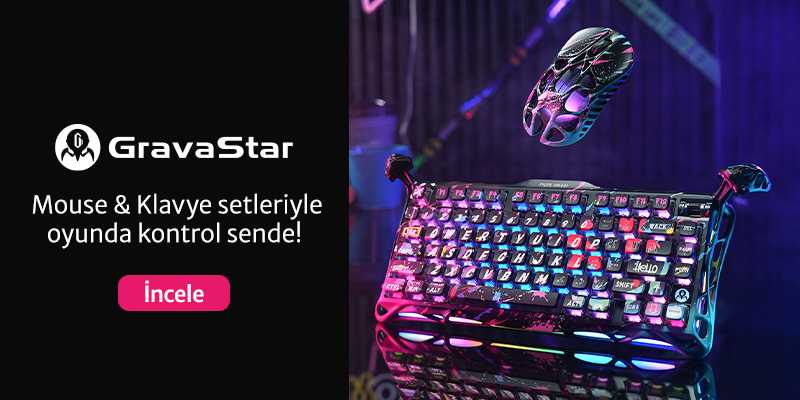 Gravastar Mercury V75 Lite HE 8KHz Kablolu Manyetik Klavye + M2 26K DPI RGB Kablosuz Mouse Oyuncu Seti, Şeffaf