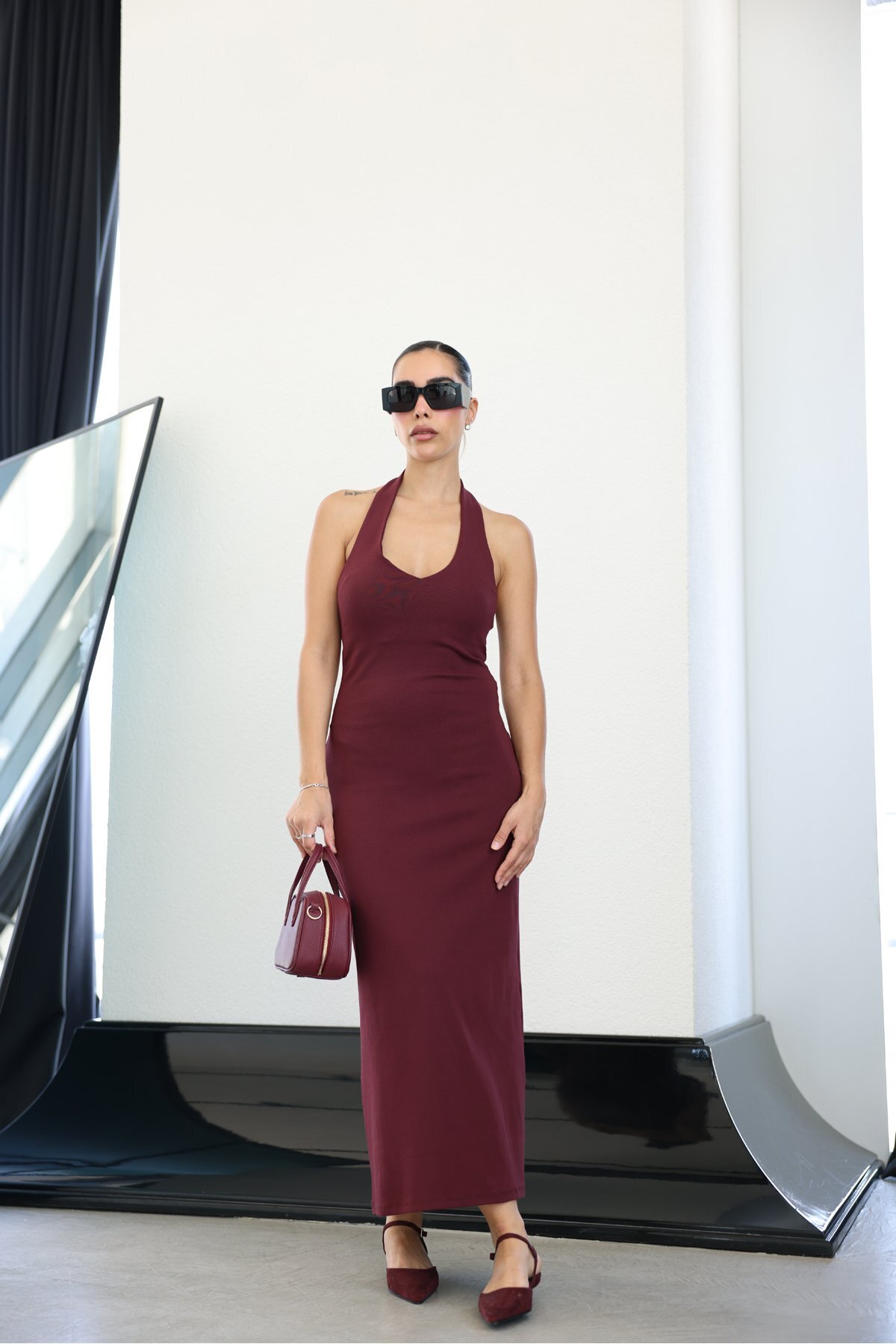 Özge Özgenç Boyundan Geçmeli Midi Boy Basic Elbise Özellikleri