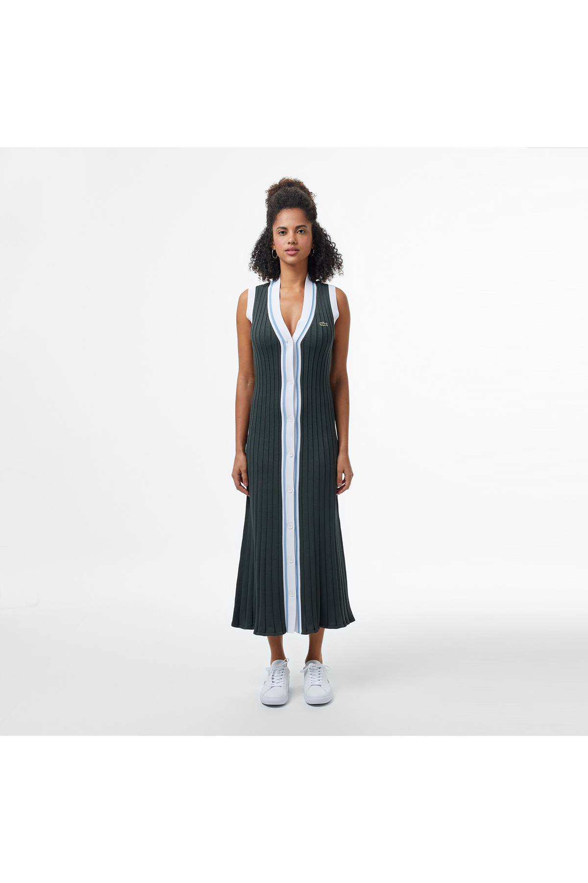 Lacoste Kadın Flare Fit Kolsuz V Yaka Renk Bloklu Koyu Yeşil Elbise Özellikleri