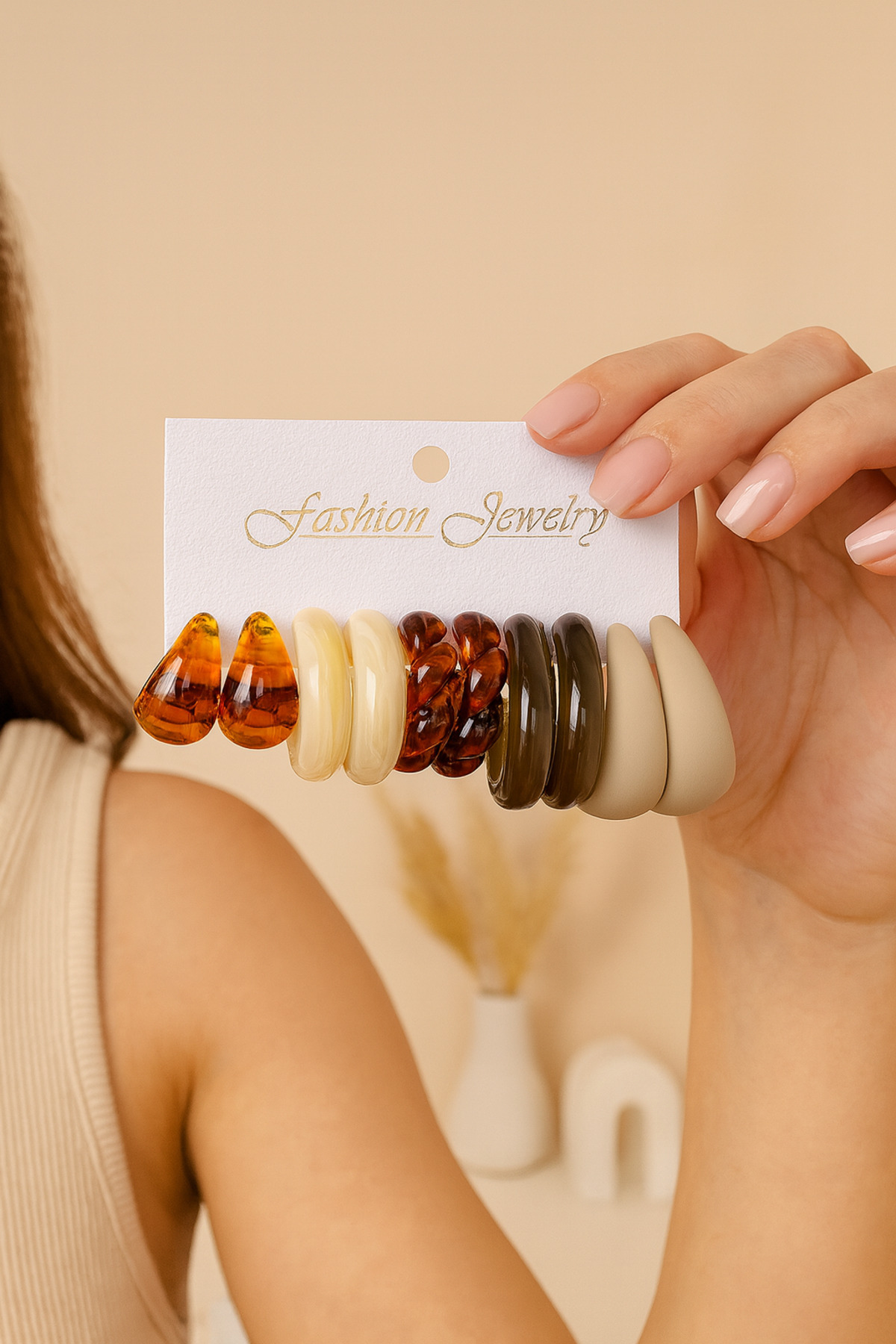 PABALAS 5 çift Reçine Geometrik Halka Küpe, Aşk, Su Damlası, C-şekilli Tasarım Küpe Seti