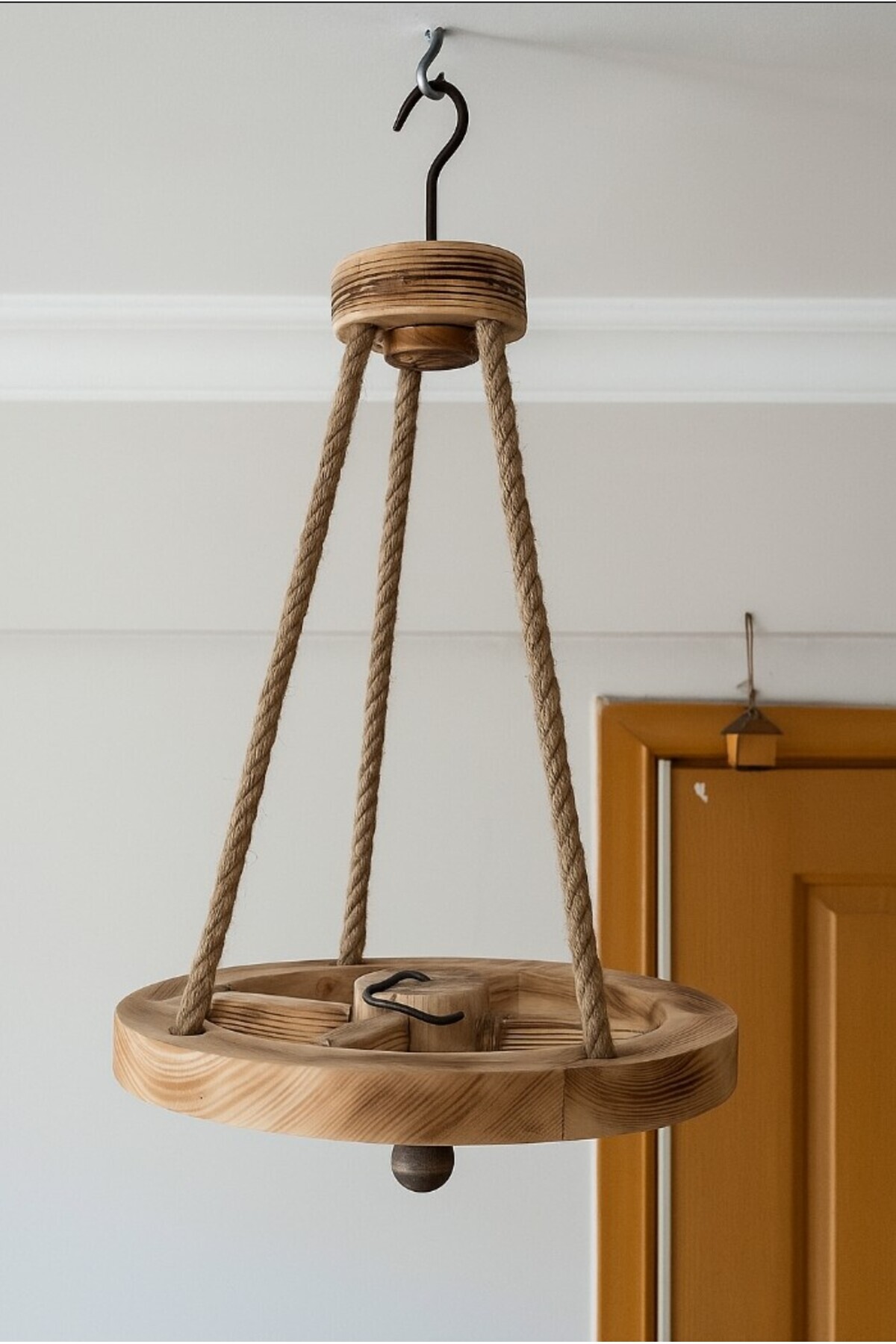 pagus OTANTİK AHŞAP HALATLI TEKER AVİZE 40 Cm