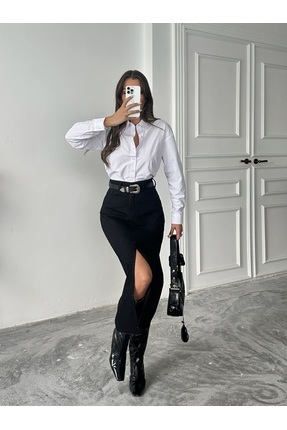 BİKELİFE Kadın Siyah Yüksek Bel Likralı Esnek Geniş Paça Palazzo Pantolon