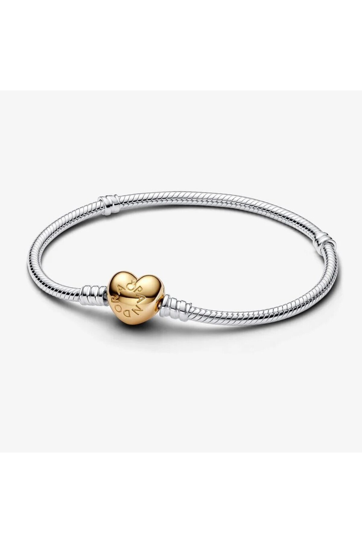Pandora Moments 14 Ayar Altın Kaplama Kalp Klipsli Bileklik 568707C00-18