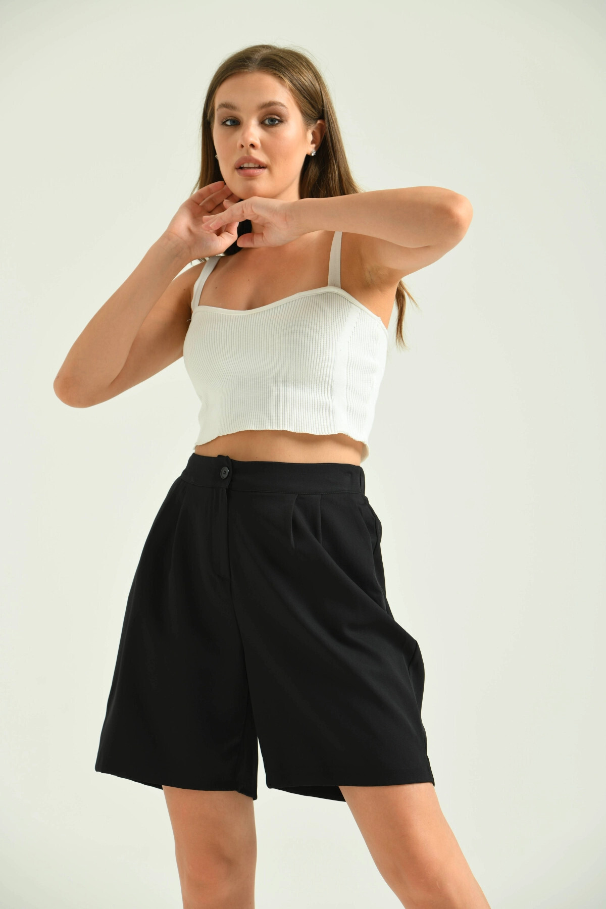 Park Karon Kadın Siyah Uzun Basic Kumaş Şort