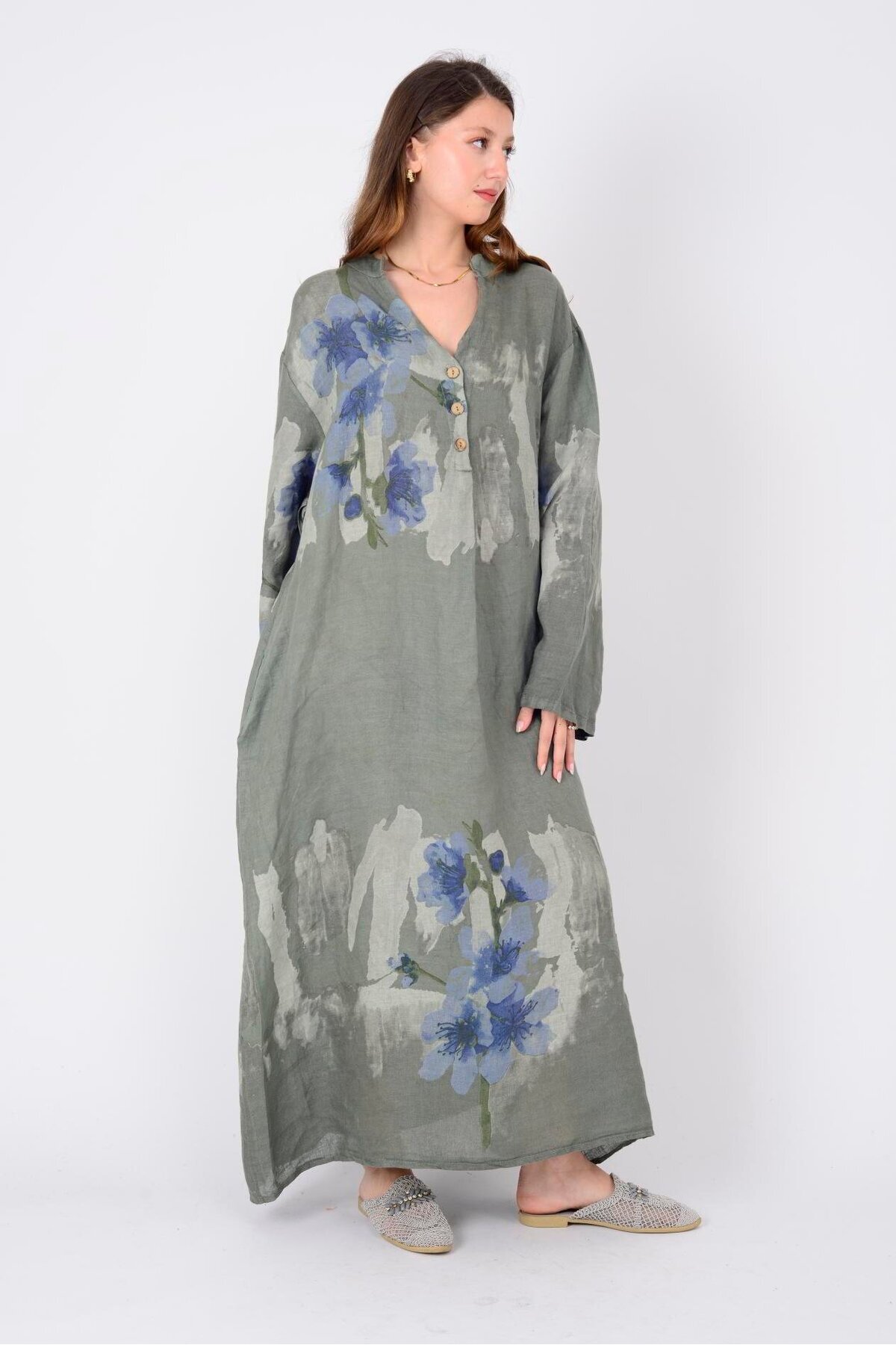 Park Moda 72230 SPRING SPLASH ÇİÇEK DESEN KETEN ELBİSE