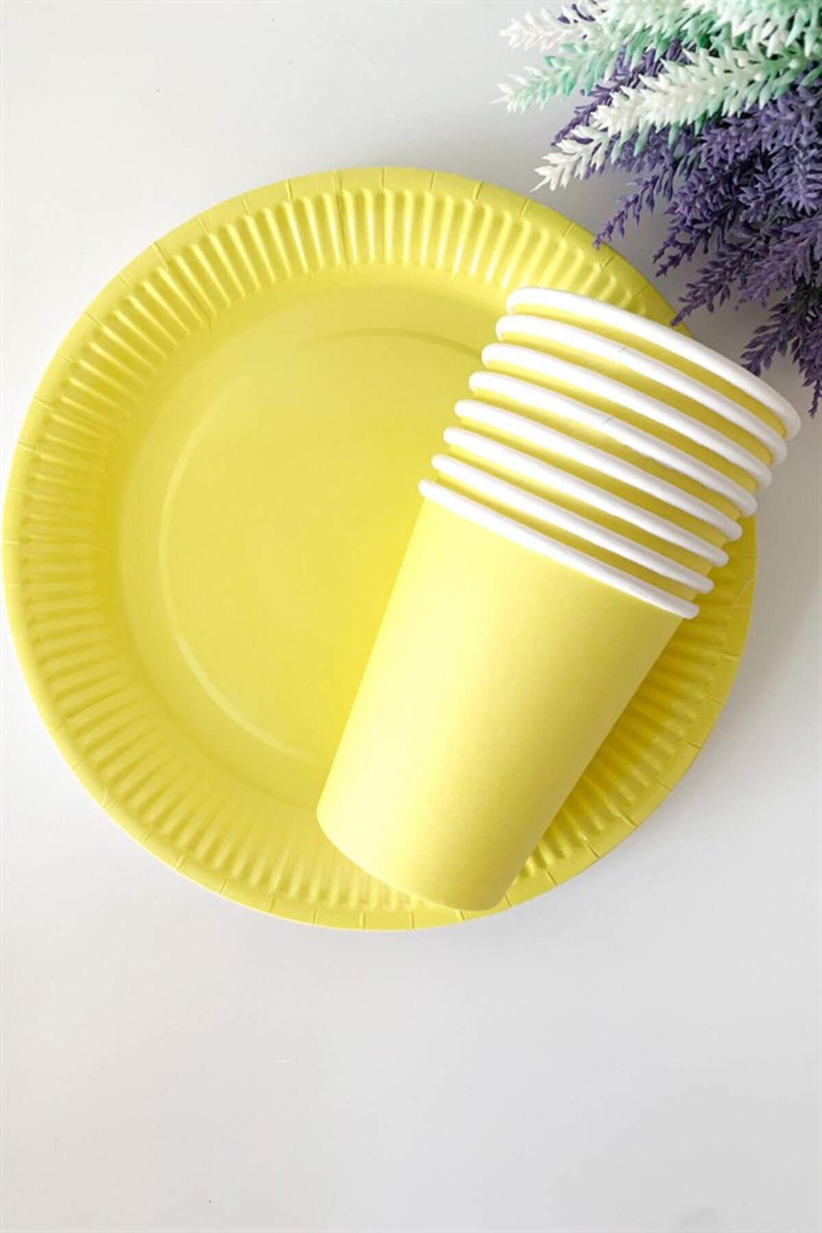 Partifabrik Sarı Makaron Pastel Karton Tabak Bardak Set 8 Li
