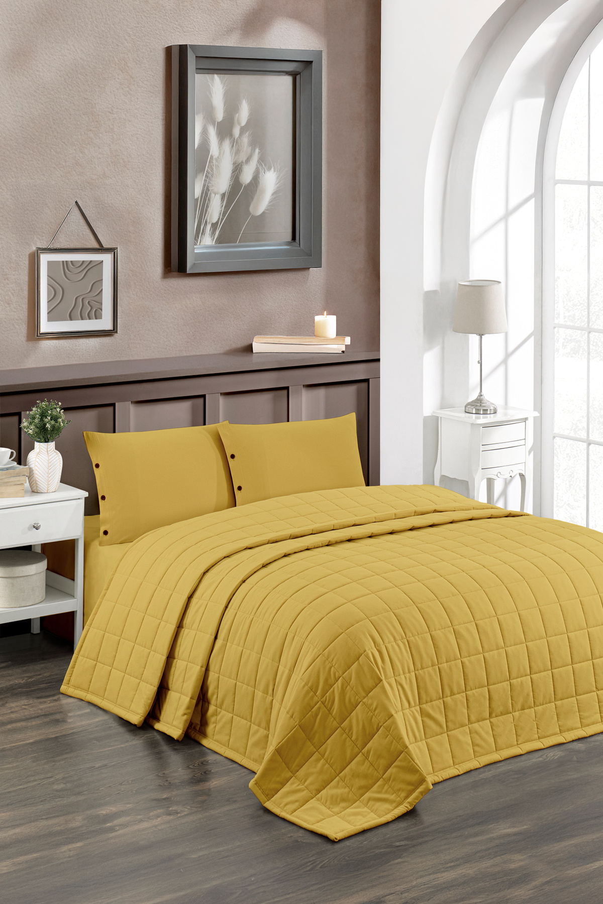 PASIONI Soft %100 Pamuk Tek Kişilik Yatak Örtüsü Hardal