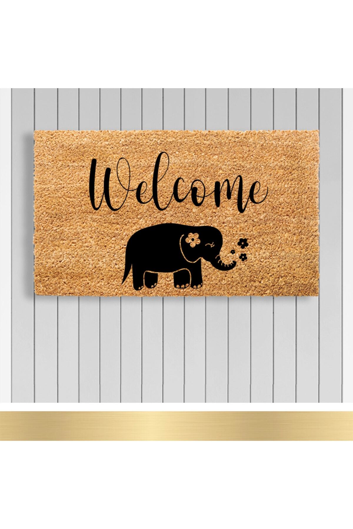 Paspashello , Design Koko Kapı Önü Paspas / Pvc Taban / Model; Çiçekli Fil - Welcome
