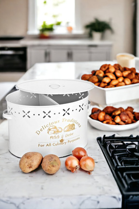 Her ne kadar, bir defada çok fazla alınan bazı durumlarda saklanması konusunda problem yaratan ürünler olsalar da patates ve soğan hemen her yemeğin vazgeçilmez malzemesi olarak her evde ve her mutfakta yerini almaktadır. Ancak bazı durumlarda, her defasında saklama alanına gidilmesi ve ürünlerin buradan mutfağa taşınması durumu zor olabilmekte ve zaman kaybına yol açabilmektedir. Bu zaman kaybını ortadan kaldırmak ve aynı zamanda mutfaklarda dekoratif bir hava oluşturmak için tasarlanmış olan dekoratif patates soğan sepeti modelleri, kullanım kolaylığı sunmasının yanı sıra, herkesi her defasında büyük saklama alanına gidilmesinden ve ürünlerin taşınması zahmetinden de kurtarmaktadır. Ürünlerin dekoratif olarak üretildikleri ve mutfak patates soğan meyve sepeti olarak özellikle mutfak kullanımı için tasarlandıkları göz önünde bulundurulduğunda, yalnızca dekoratif değil aynı zamanda sağlam ve dayanıklı olarak üretildikleri de bilinmektedir. Hem yemekler sırasında kolaylıkla erişilebilir bir alanda en sık kullanılan malzemelerin bulundurulması amacı ile tasarlanan hem de bu tasarım yapılırken mutfaklara şık bir dokunuş yapılması amaçlanan ürünlerin çeşitlerinin çok sayıda olması sayesinde, bu ürünlerin herkese hitap etme durumunun arttığı bilinmektedir. Bu durumun en iyi örneklerinde olan ferforje bölmeli patates soğan sepeti modelleri, renk, materyal, model ve boyut olarak pek çok farklı kategoride birden fazla seçenek içermektedir. Mutfak boyuna ya da tezgâh boyuna göre seçim yapılabileceği gibi, el altında ne kadar ürün bulundurulmak istenildiğine de bağlı olarak seçim yapılabilmesi amacı ile herkese uygun olacak şekilde çok çeşitli modellerin olduğu bilinmektedir. Ferforje olarak satışa sunulan ürünlerin özellikle kolay temizlenebilir bir materyalden oluşmaları ve bu materyalin aynı zamanda suya dayanıklı olması sayesinde kolay bir kullanım sunmakta ve bu sayede sıklıkla tercih edilmektedir. Renk ve desen seçenekleri çok fazla olan bu kategoride, hemen herkes kendine göre bir ürünü rahatlıkla bulabilmektedir. Yalnızca tezgahlarda değil, mutfak raflarında da kolaylıkla kullanılabilen bu modellerin daha küçük ve daha büyük boyda olanları sayesinde, mutfak tezgahlarında patates ve soğan bulundurmak mümkün olmakta iken, mutfak raflarında sarımsak gibi daha küçük materyalleri saklamak ve el altında bulundurmak da mümkün hale gelmektedir.