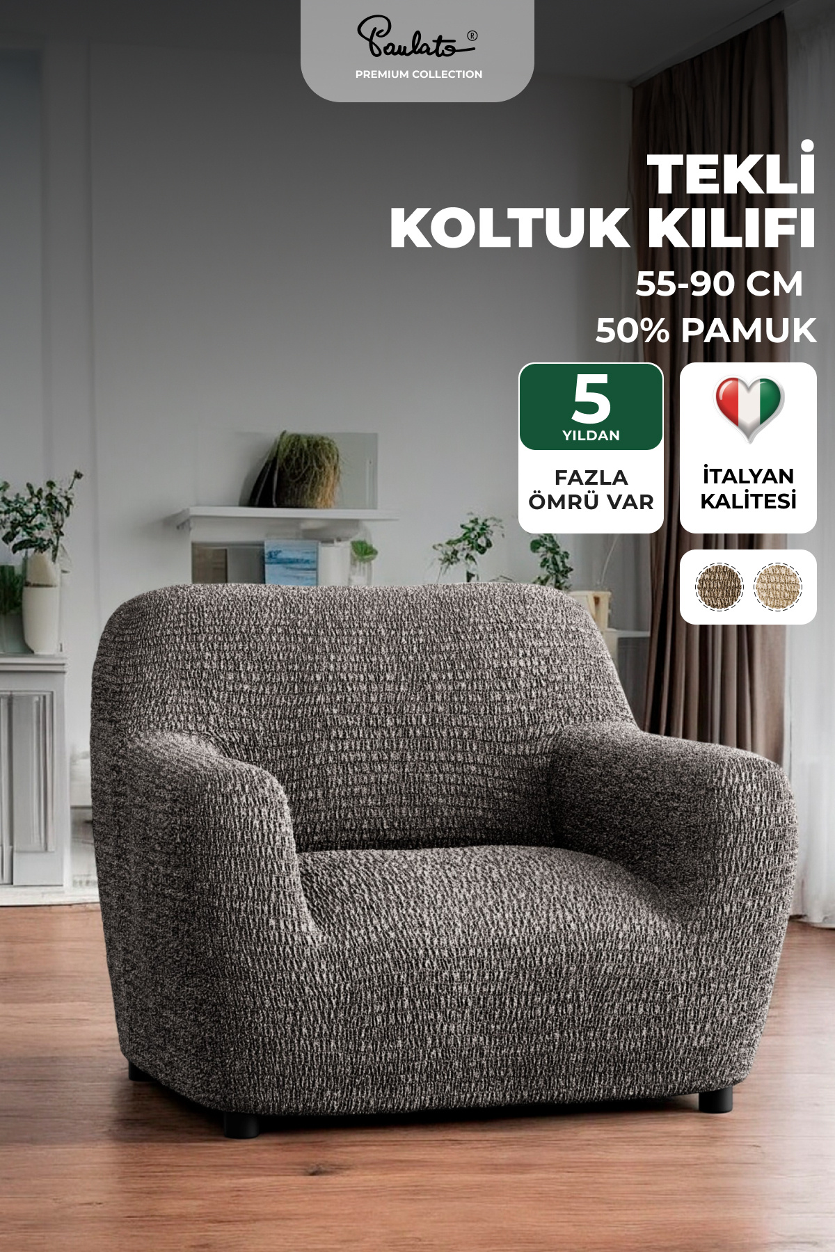 Paulato Lastikli Esnek Ve Yıkanabilir Tek Kişilik Koltuk Örtüsü Koltuk Kılıfı - Gri Özellikleri