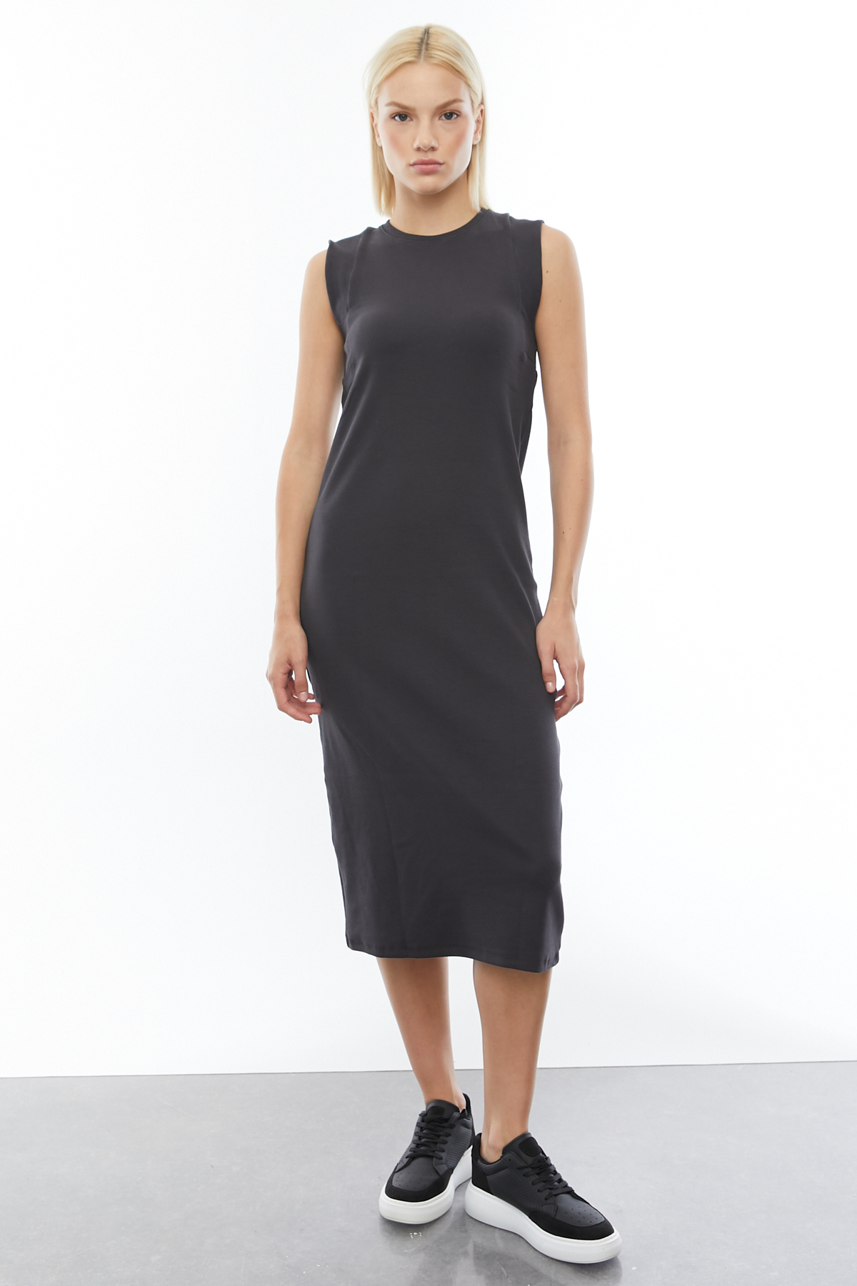 PAULMARK Kadın Sıfır Kol Basic Midi Boy Elbise