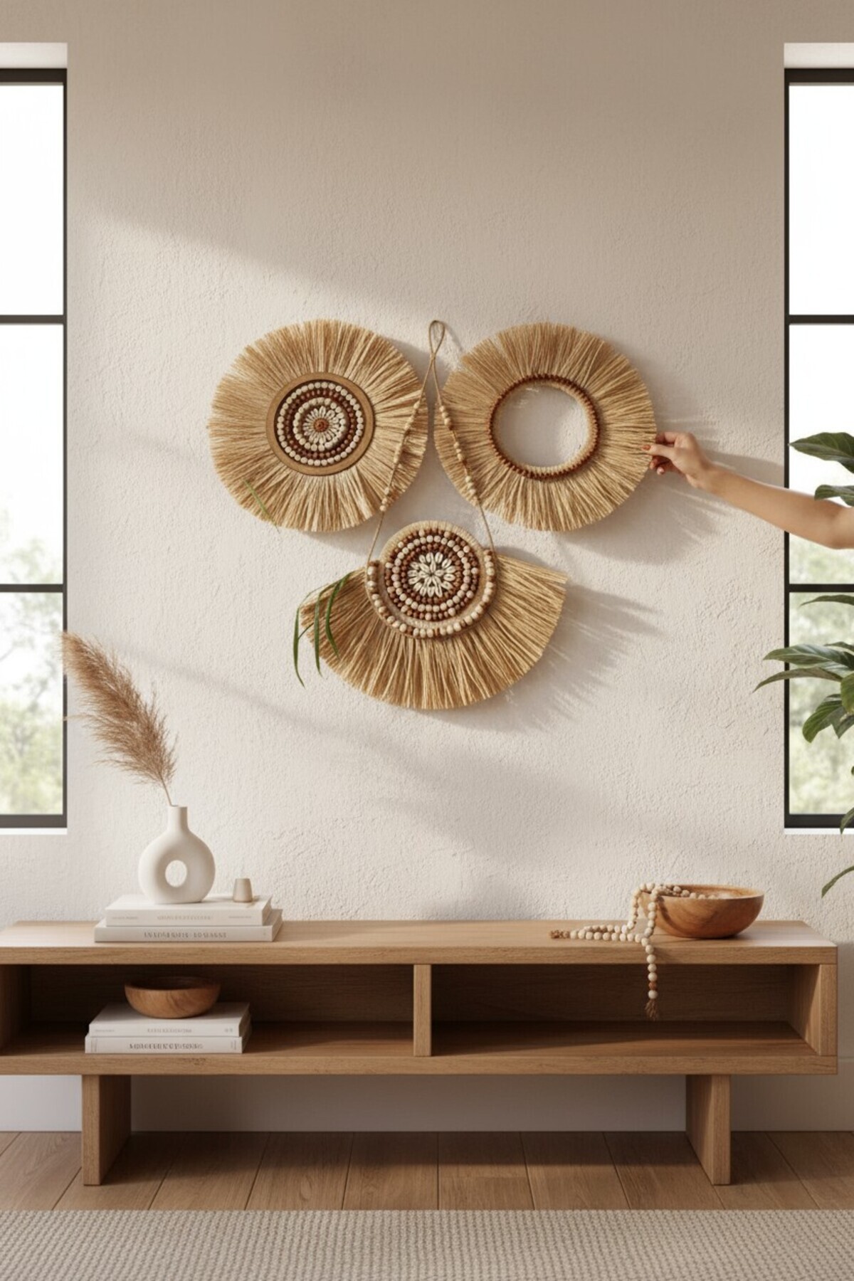 PearlHome Rafya Duvar Dekoru 3’lü Duvar Dekorasyonu