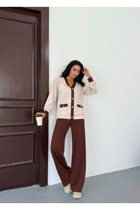 New Laviva Kadın Pudra Yuvarlak Yaka Sweatshirt & Bol Paça Beli Lastikli Pantolon - Rahat Alt & Üst Takım