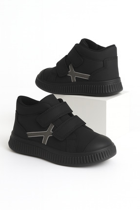 ZilvanaErkek Çocuk Siyah Gri Detaylı Çift Cırt Cırtlı Kışlık Bot
