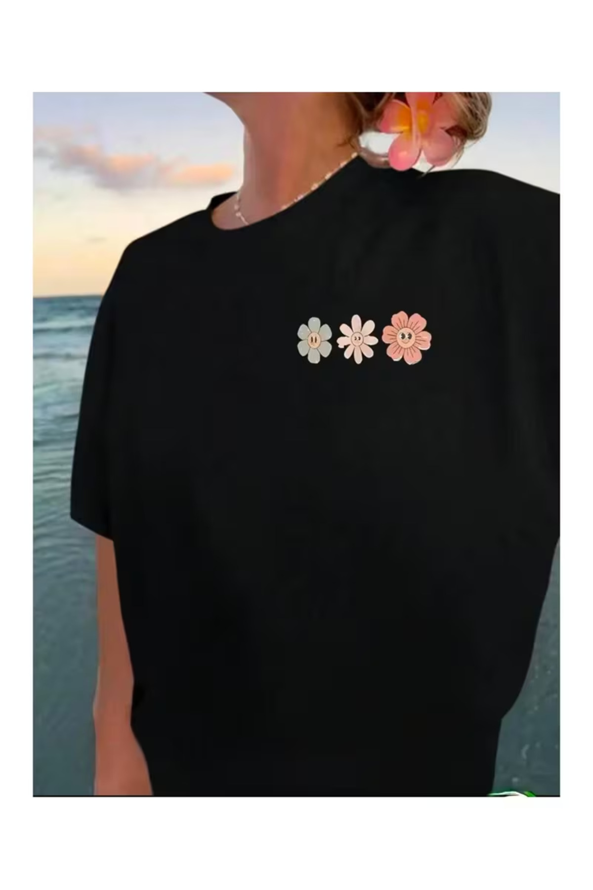 PENTHİLUS Ön & Arka Çoklu Çiçek Baskılı Basic Tişört Özellikleri