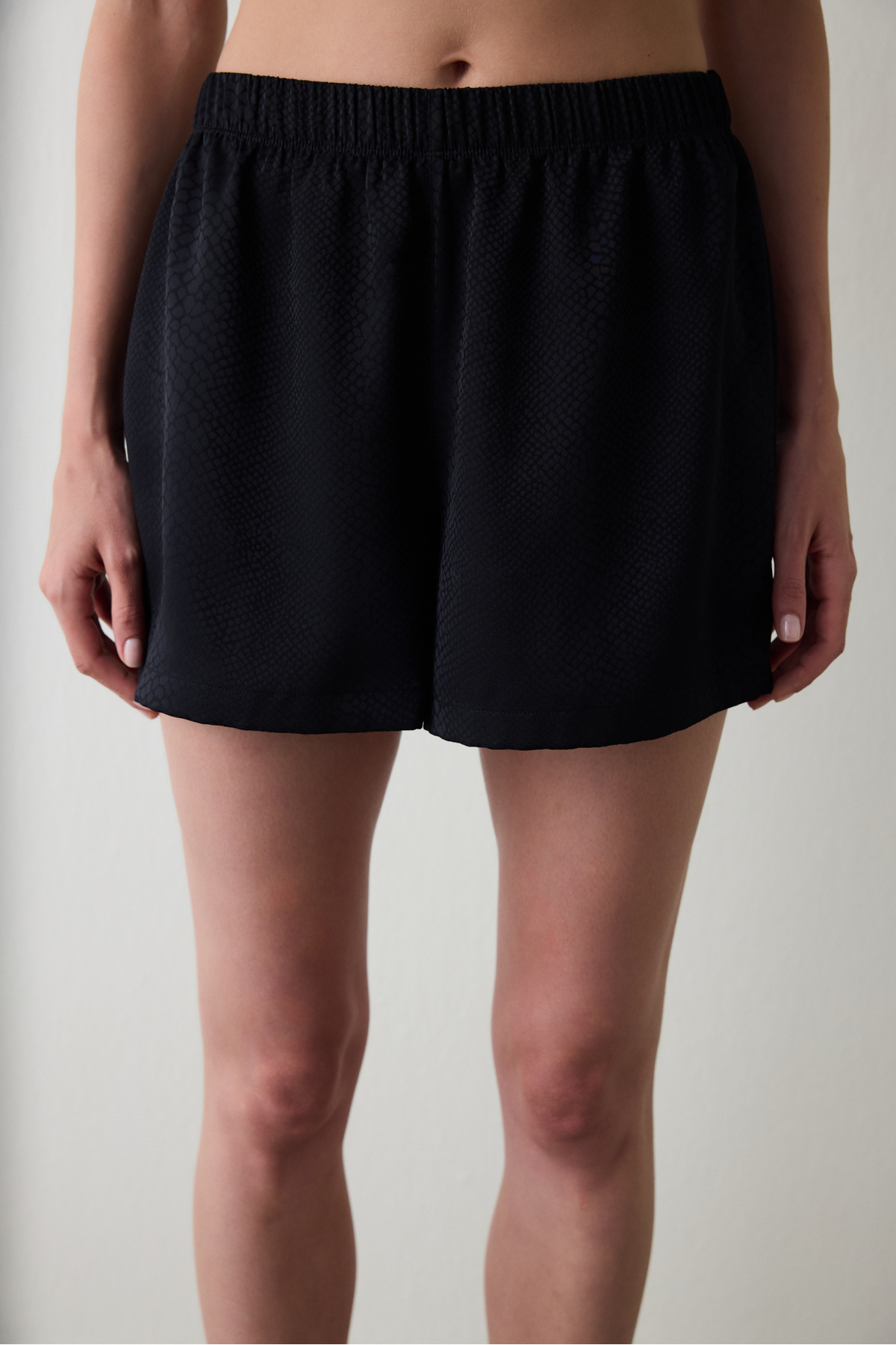 Penti Siyah Fleur Saten Şort Pijama Altı