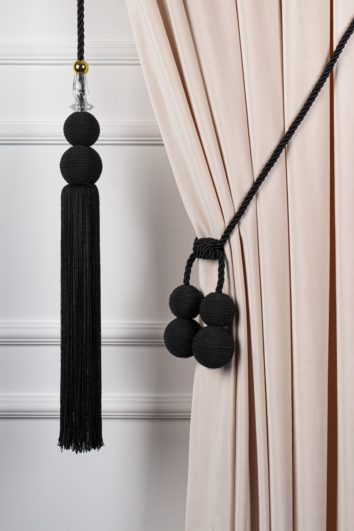 PerdeClick Siyah Renk Kuruvaze Braçol Set
