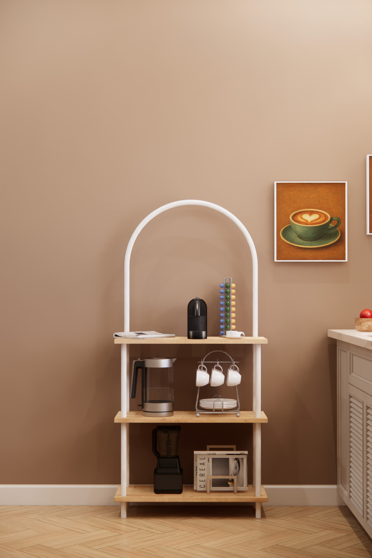 Phobia Döndür Tak Modüler 4 Raflı Kahve Köşesi Çok Amaçlı Mutfak Rafı, Kolay Kurulumlu Raf Sistemi Bohem