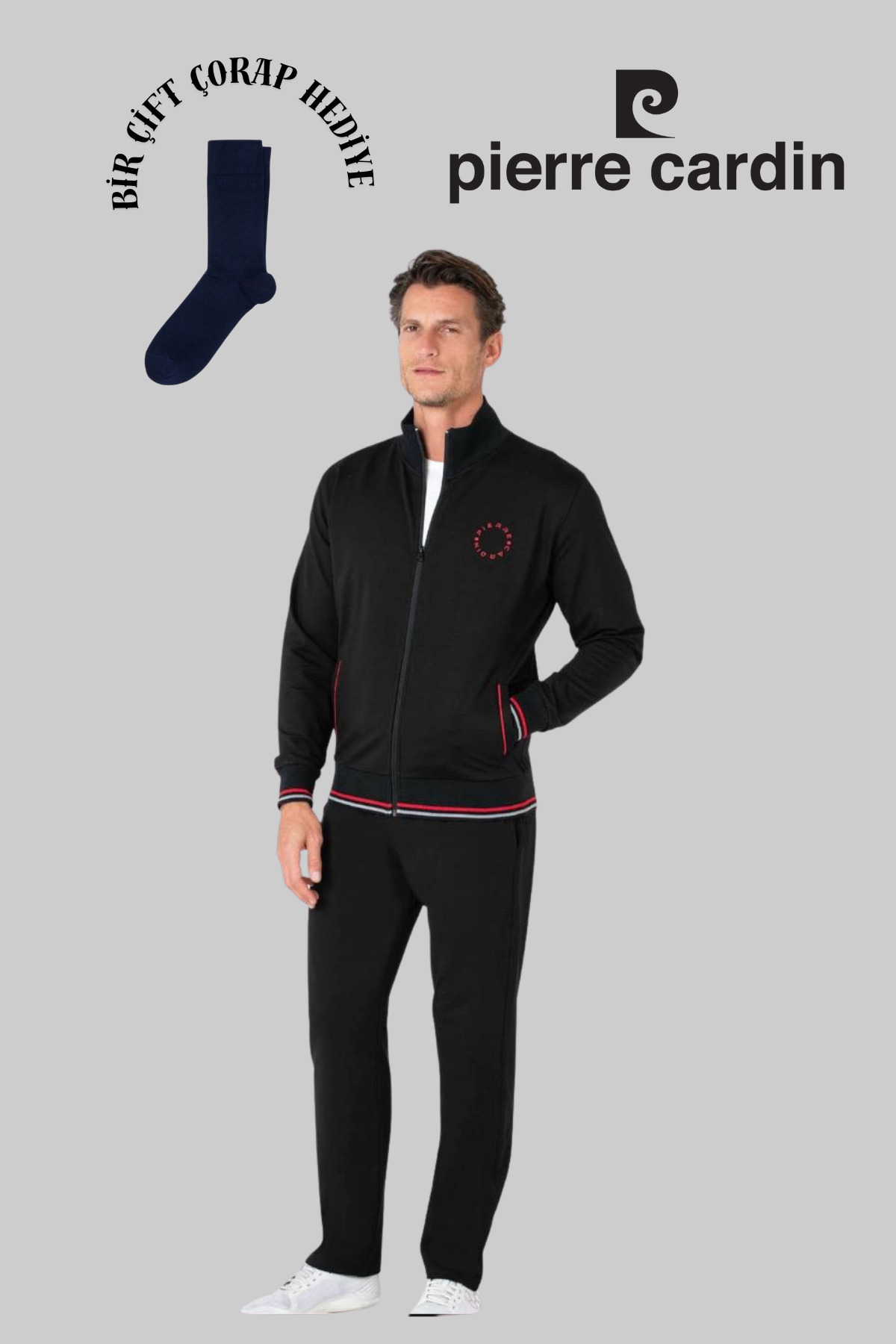 Pierre Cardin Erkek Siyah Pamuklu Fermuarlı Eşofman Takımı 1 Çift Çorap Hediye .R.O1.P.İ.ERŞ.7.E.L.T