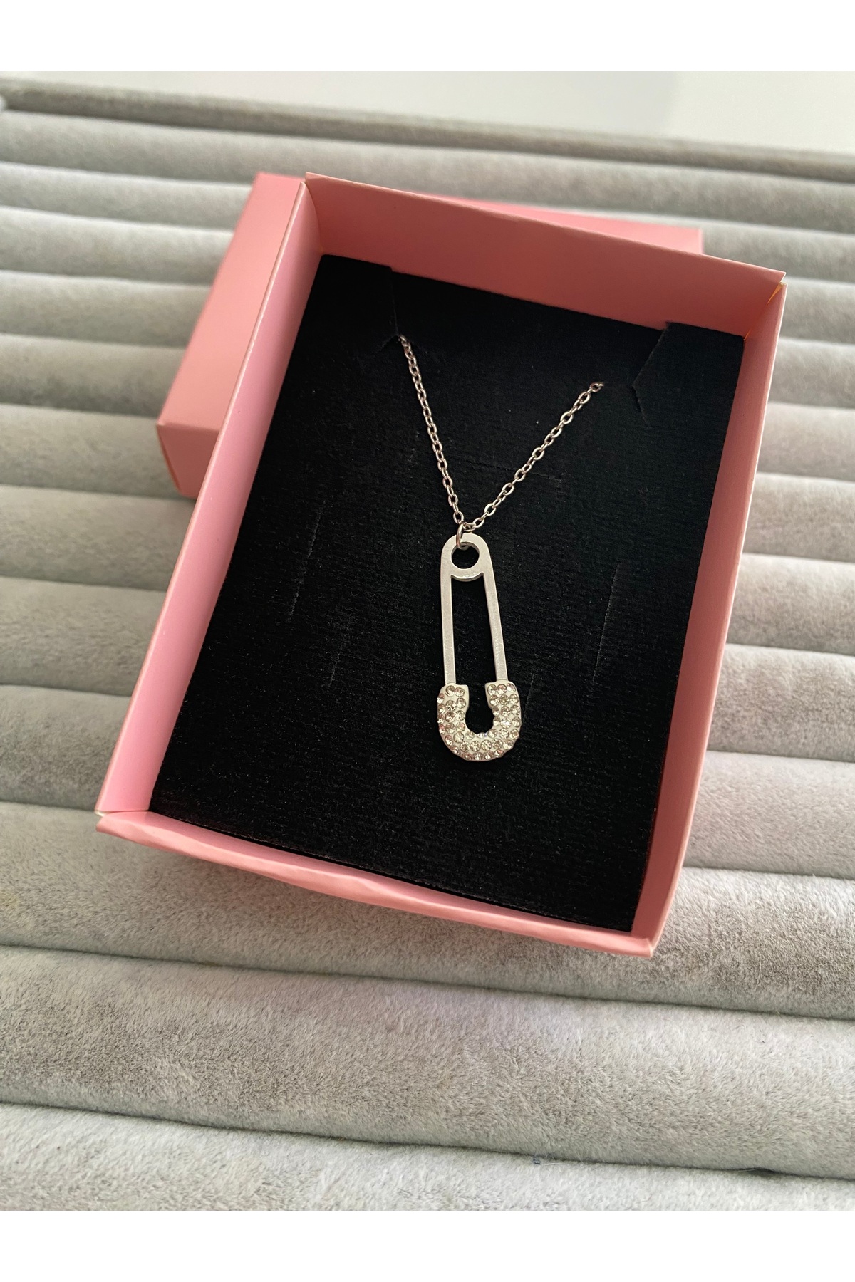 PİNK Çengelli İğne Şekilli Çelik Kolye Özellikleri