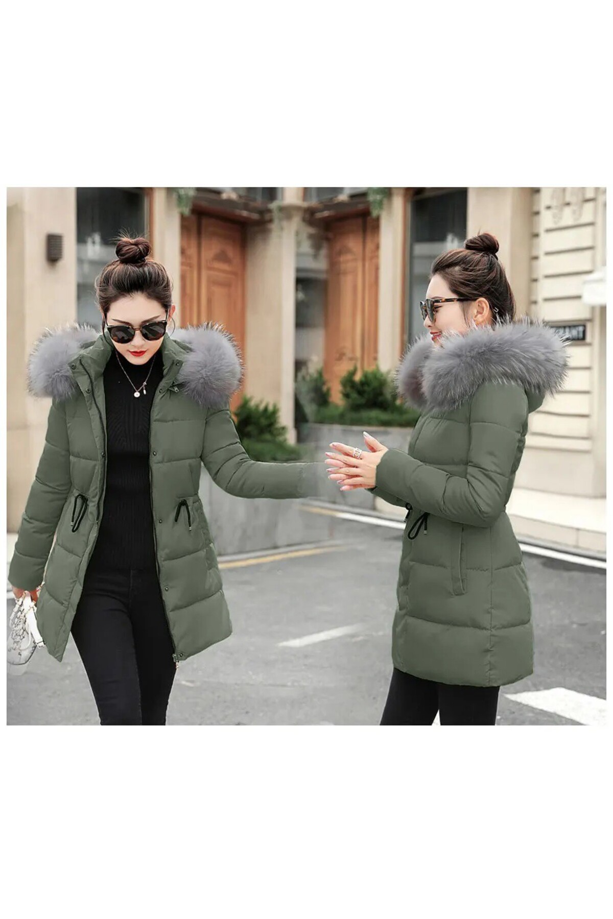 Długa damska kurtka puchowa - zimowy kołnierz i detale z futra Barbora – cechy produktów