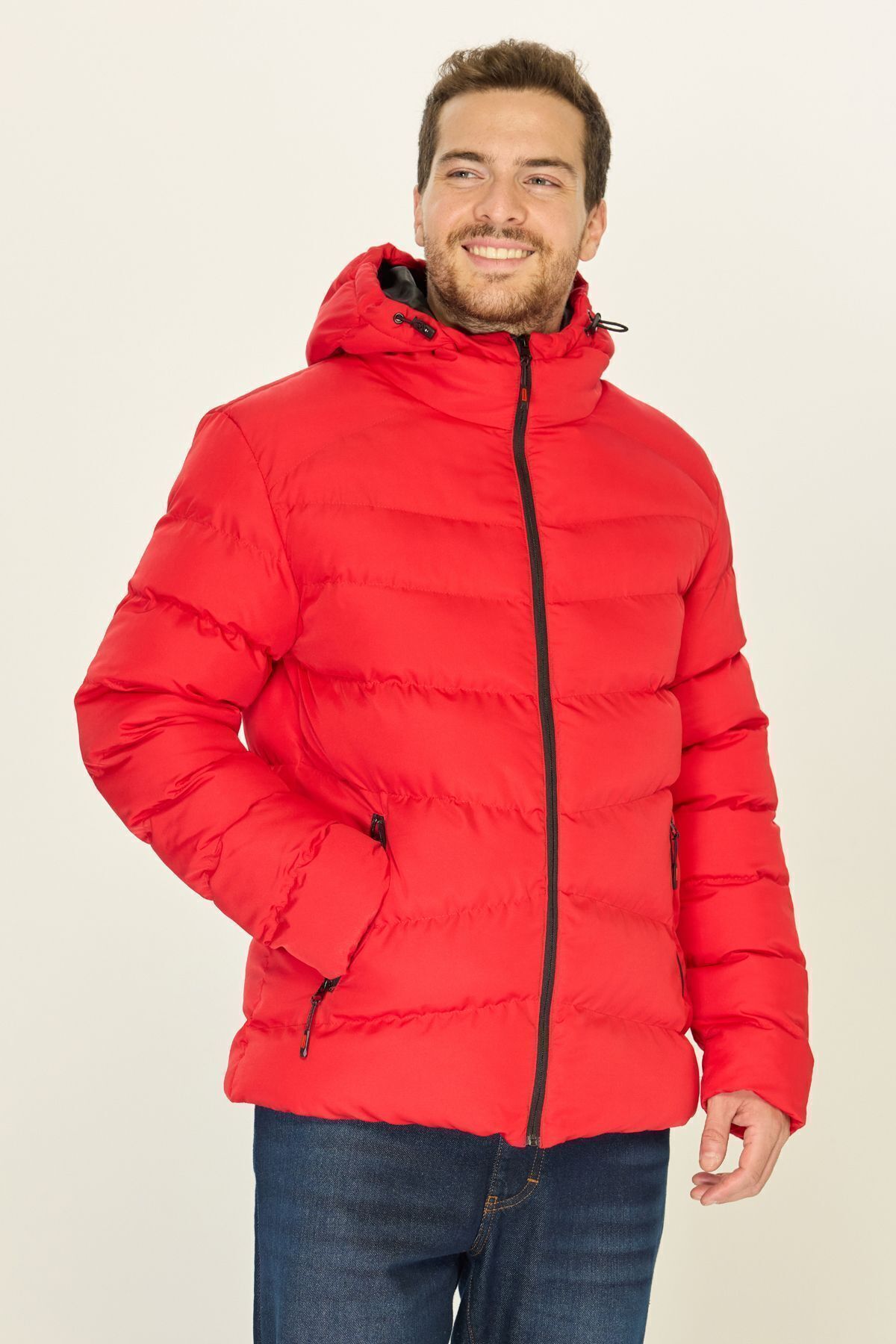 D1fference Męska czerwona kurtka zimowa z kapturem, nieprzemakalna i ocieplana