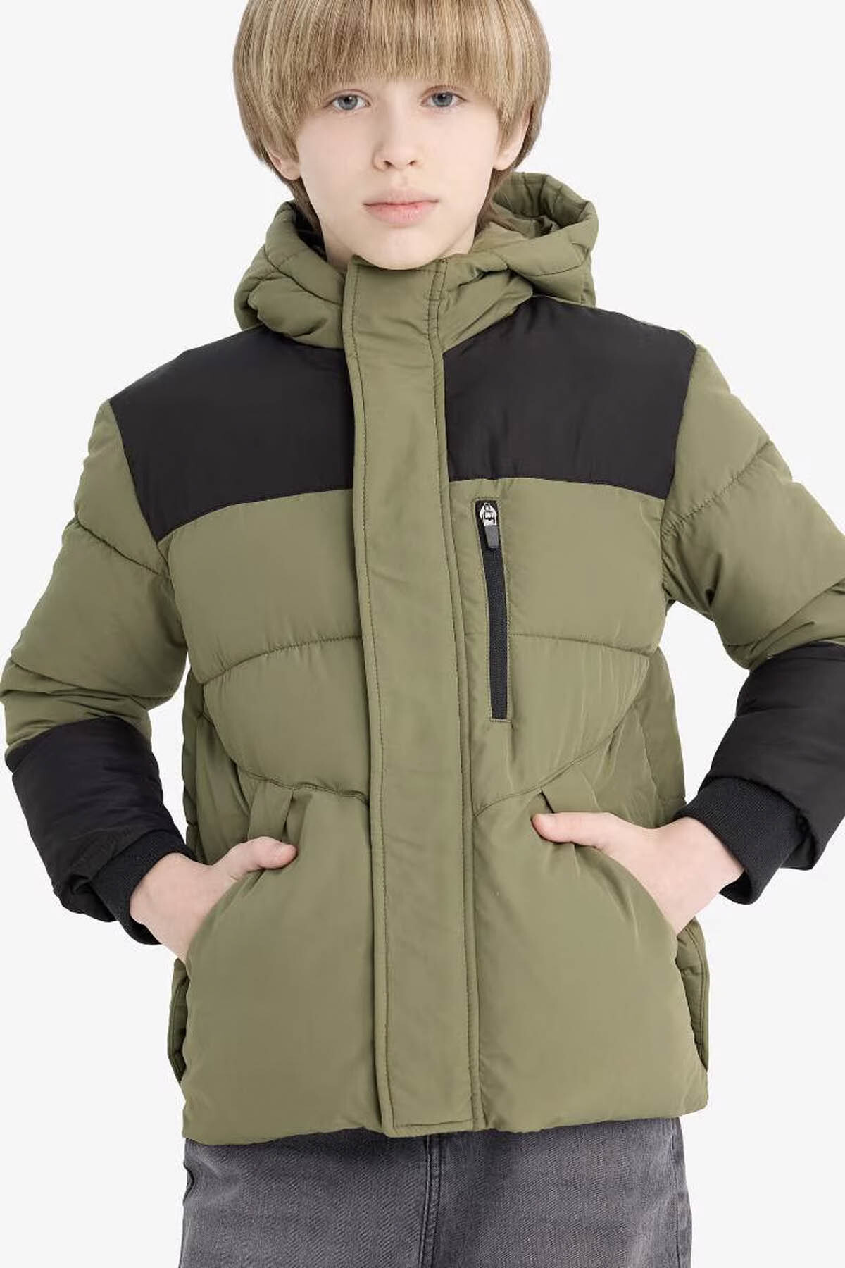 Defacto Nieprzemakalna kurtka z kapturem i zamkiem błyskawicznym dla chłopców E8648A825WN