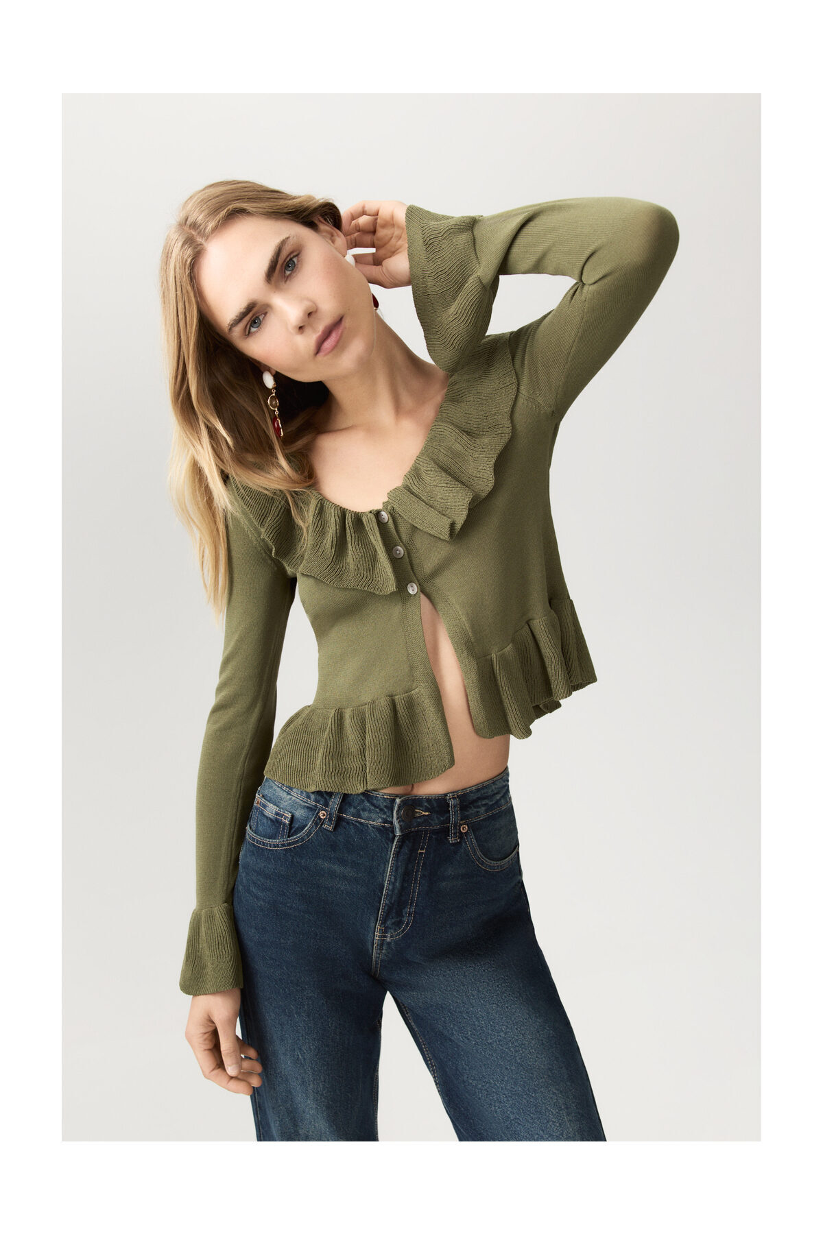 Kobieta Ruffle dzianinowa kurtka LEFTIES – cechy produktów