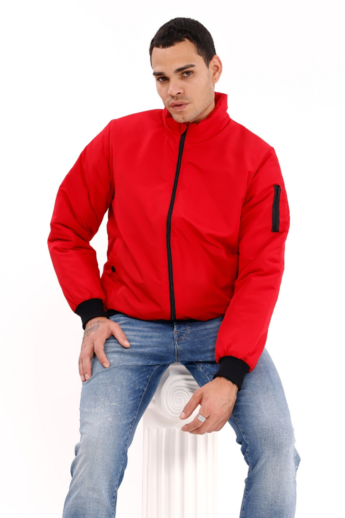 Kurtka męska w kolorze czerwonym z podszewką i stójką, sezonowa, wiatroszczelna i wodoodporna z kieszeniami Montland – cechy produktów