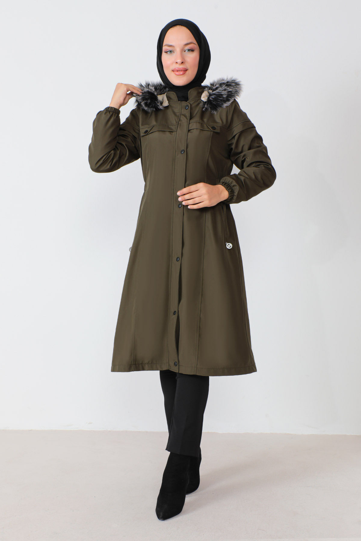 Płaszcz z elastyczną talią Tsd230818 Khaki Tesettür Dünyası – cechy produktów
