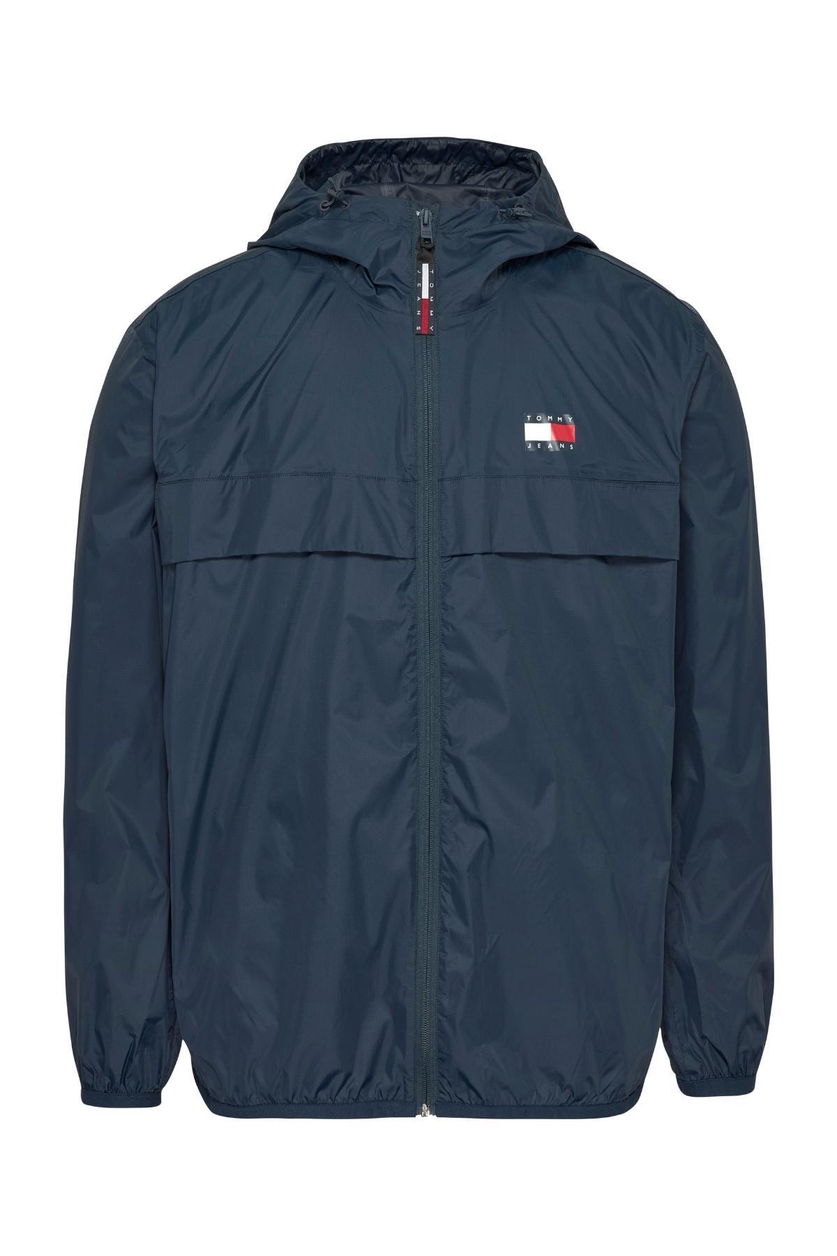 Tommy Jeans Męska bluza z logo marki, zapinana na suwak, z elastycznymi mankietami i obszyciem, wodoodporna, z wysokim kołnierzem i kapturem, rozmiar L