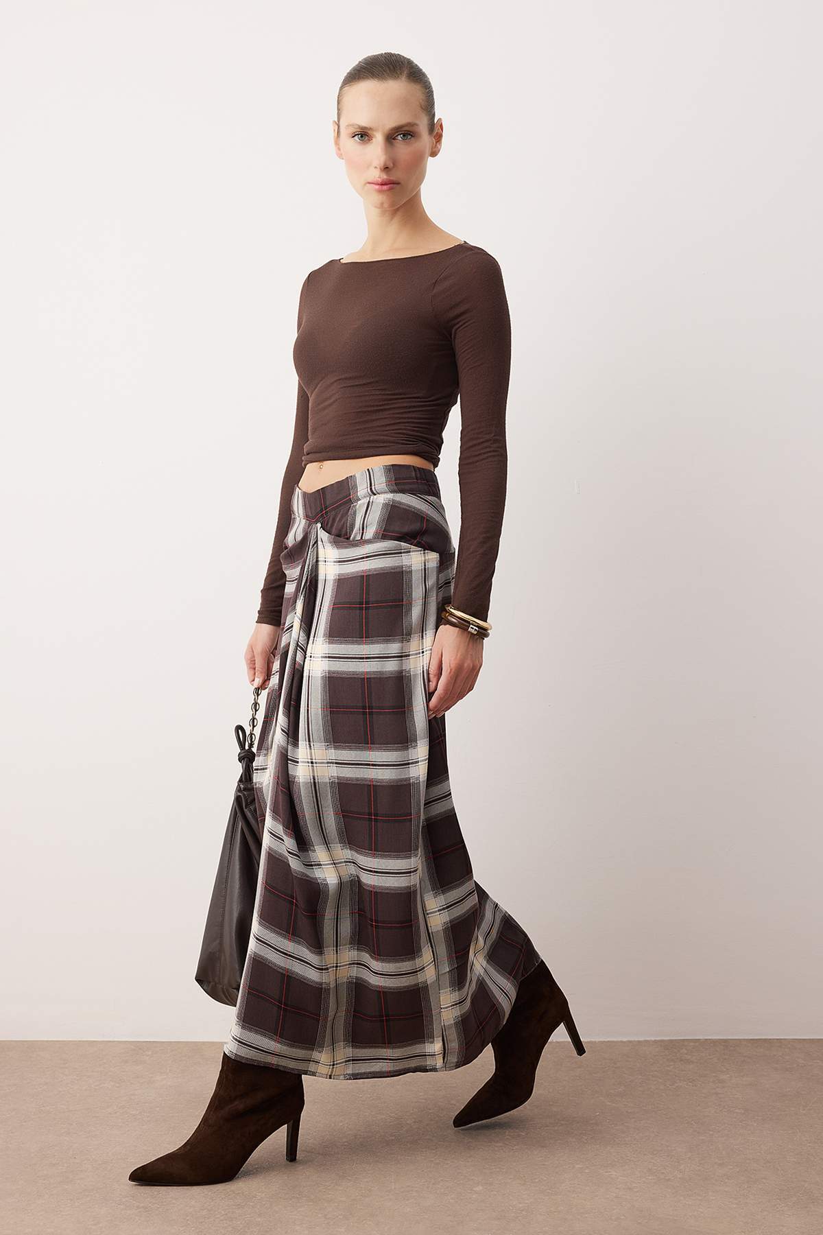Brązowa spódnica maxi z detalami w pasie TWOAW26ET00159 Trendyol Collection – cechy produktów