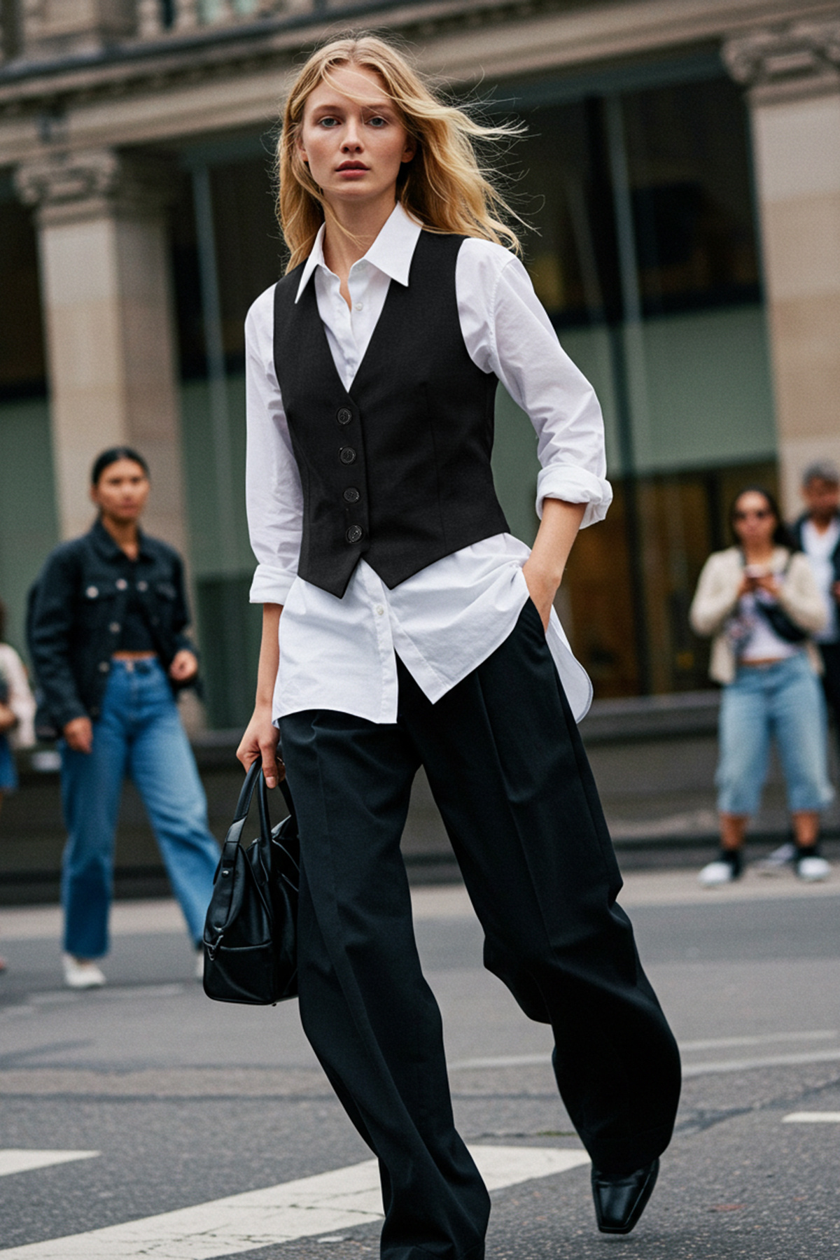Trendyol Collection Czarna, zapinana na guziki kamizelka tkana Premium Twoaw24Ye00061