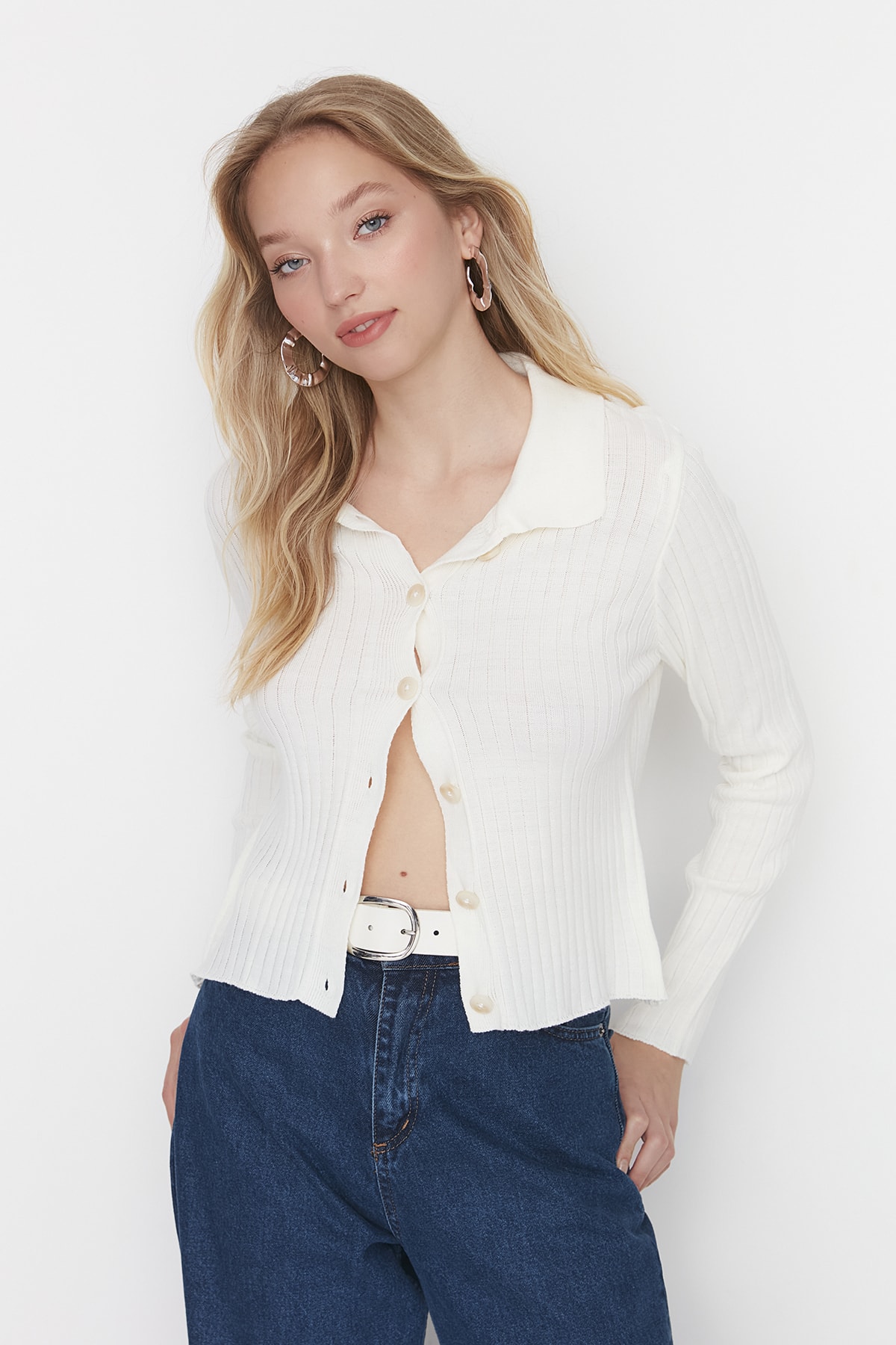 Dzianinowy kardigan polo w kolorze ecru TWOAW23HI00143 Trendyol Collection – cechy produktów